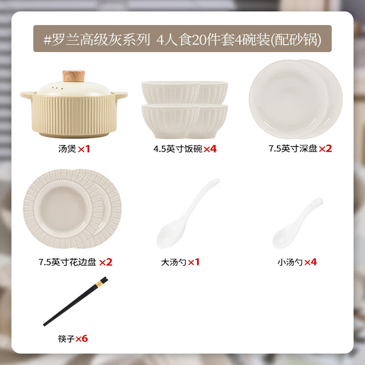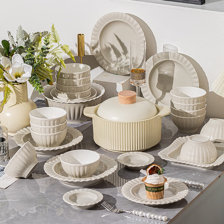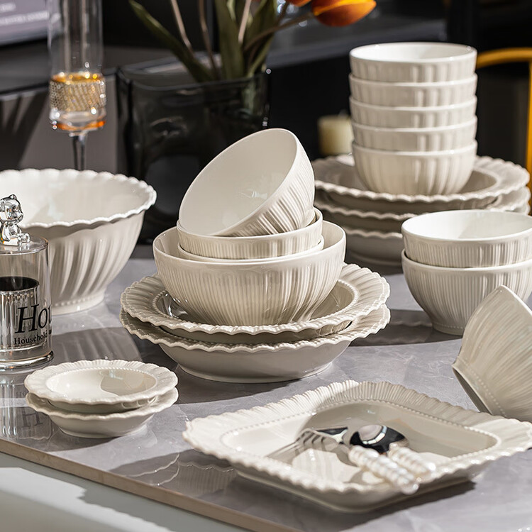 KANGMO Luxury Ceramic Tableware Set, Gray Bowls and Plates, 30-Piece Set with Casserole for 6 People 15 769₽