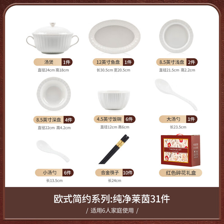 KANGMO Набор посуды Pure White, 31 предмета на 6 персон, керамика, подарочная упаковка