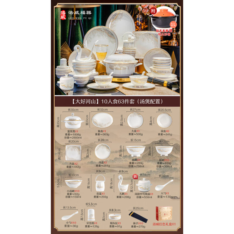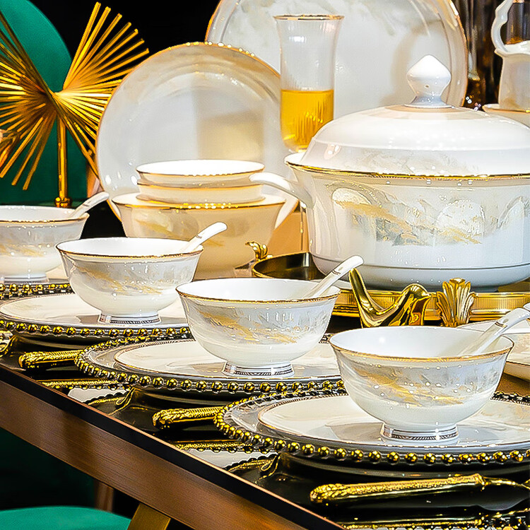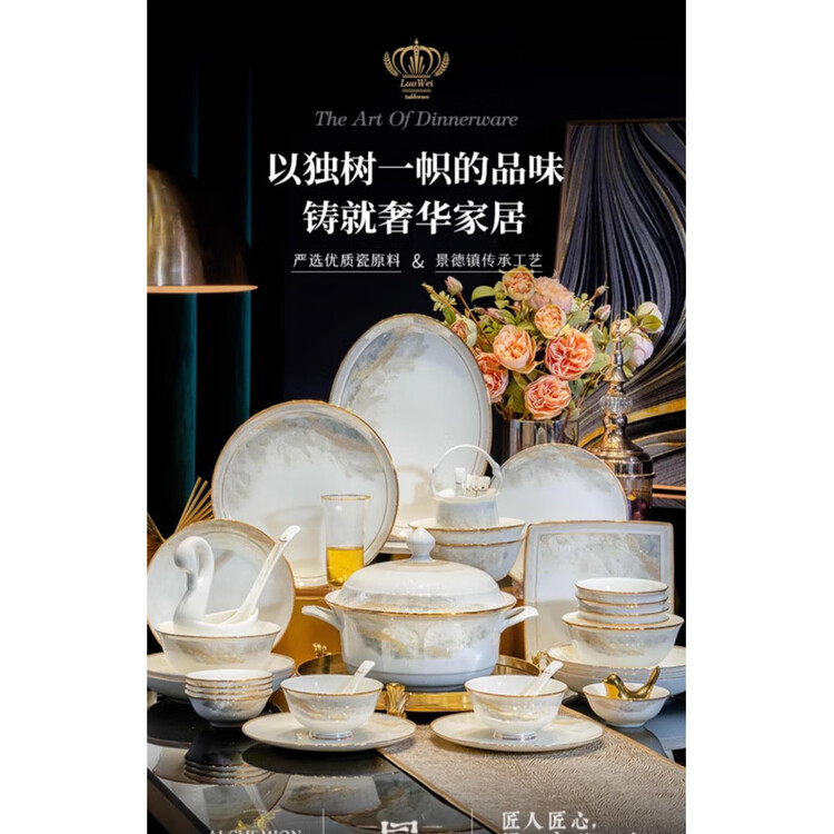 Luowei набор посуды фарфор Цзиндэчжэнь, 63 предмета на 10 персон, тушенка