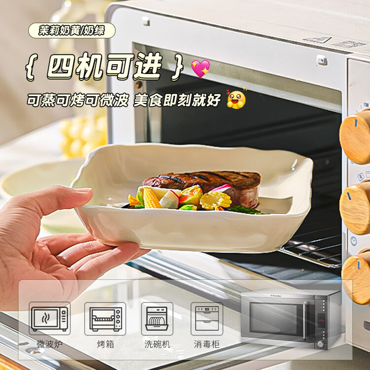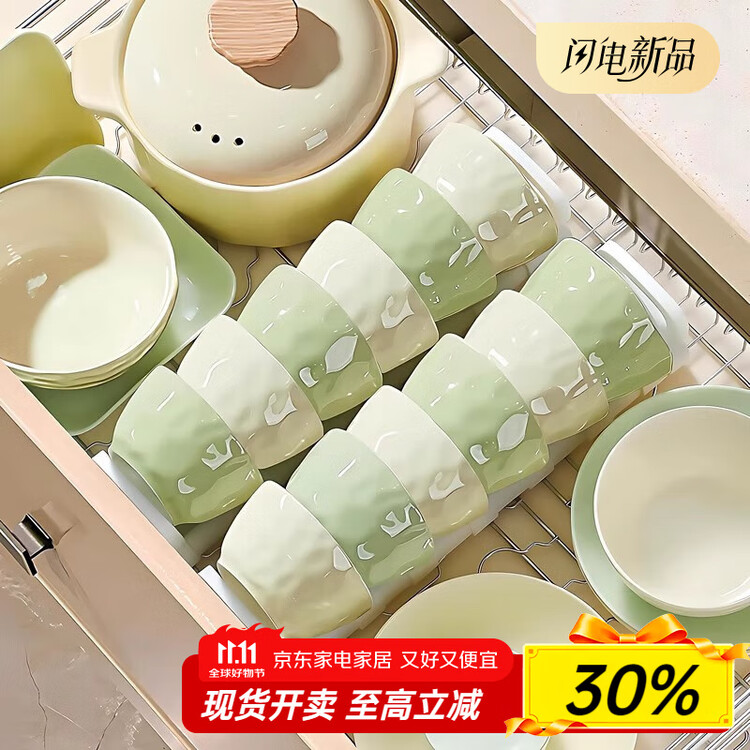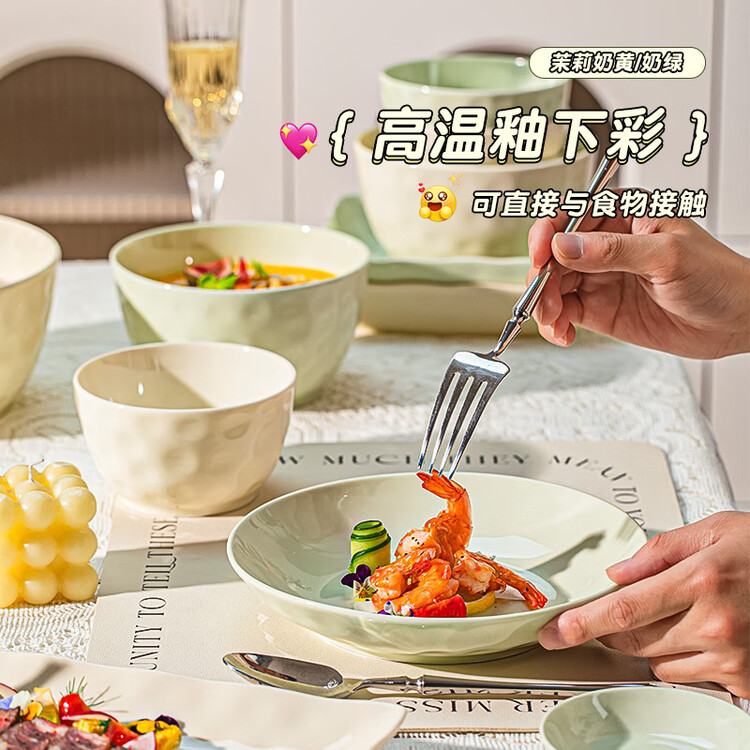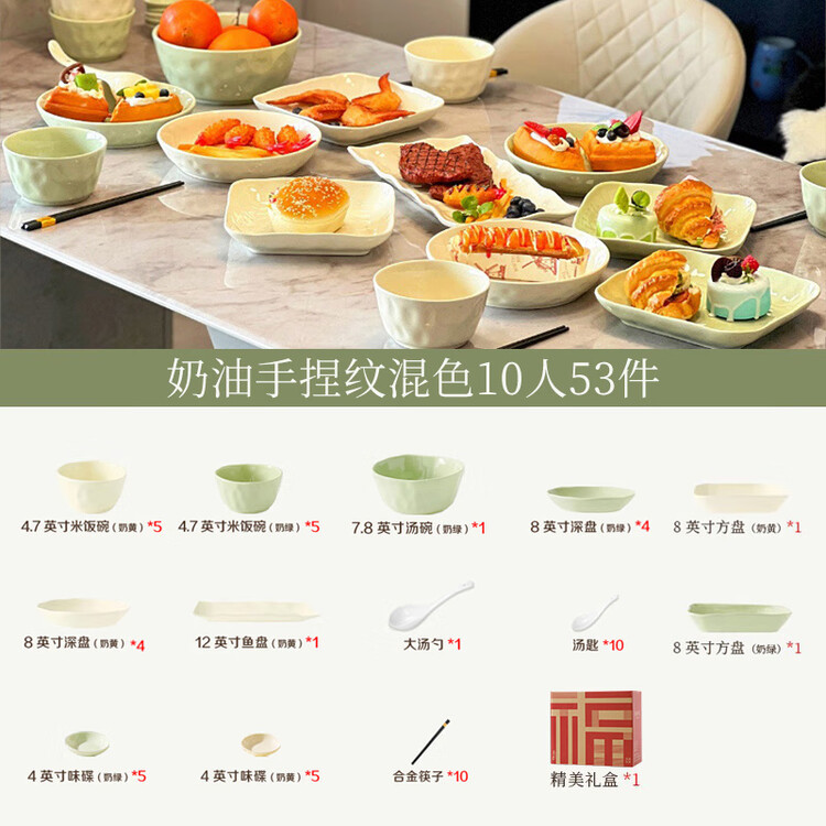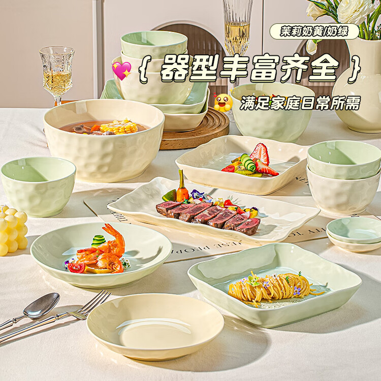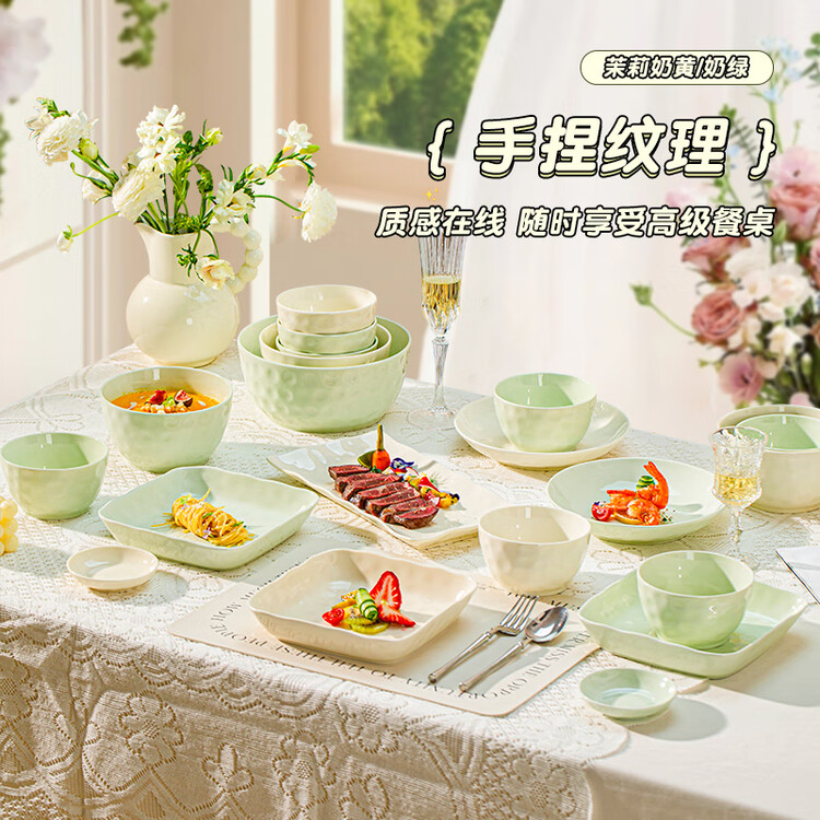 Luowei Набор посуды кремовый и зеленый, керамический подглазурный, 72 предмета