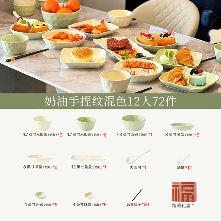 Тип товара: Набор из 12 предметов, молочно-жёлтый и зелёный, смешанный, 72 предмета