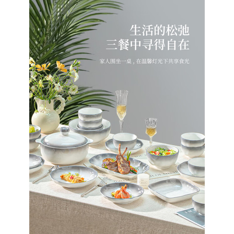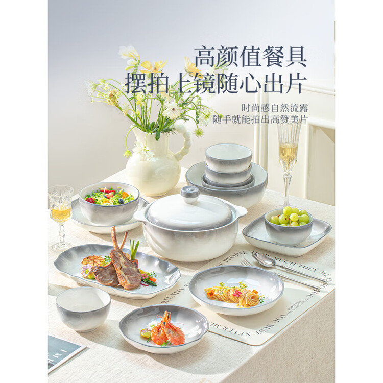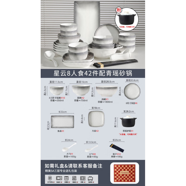Luowei Underglaze Color Nebula Tableware Set, 42-Piece 8-Person Set with Clay Pot