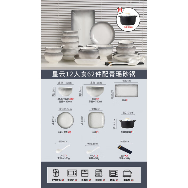 Luowei Underglaze Color Nebula Tableware Set, 42-Piece 8-Person Set with Clay Pot 19 180₽