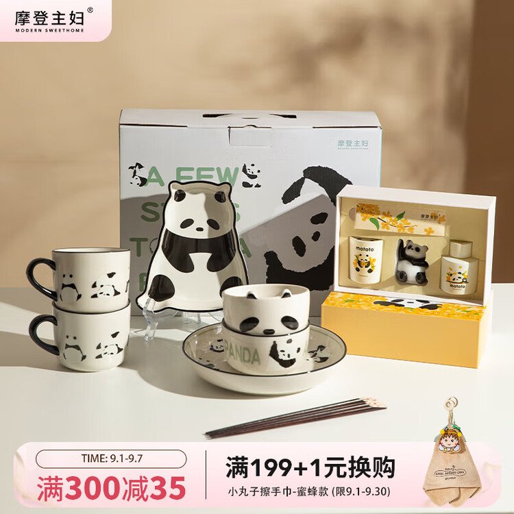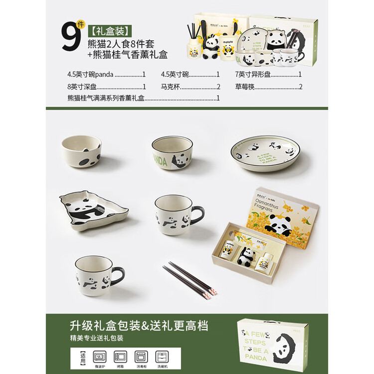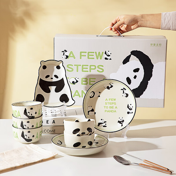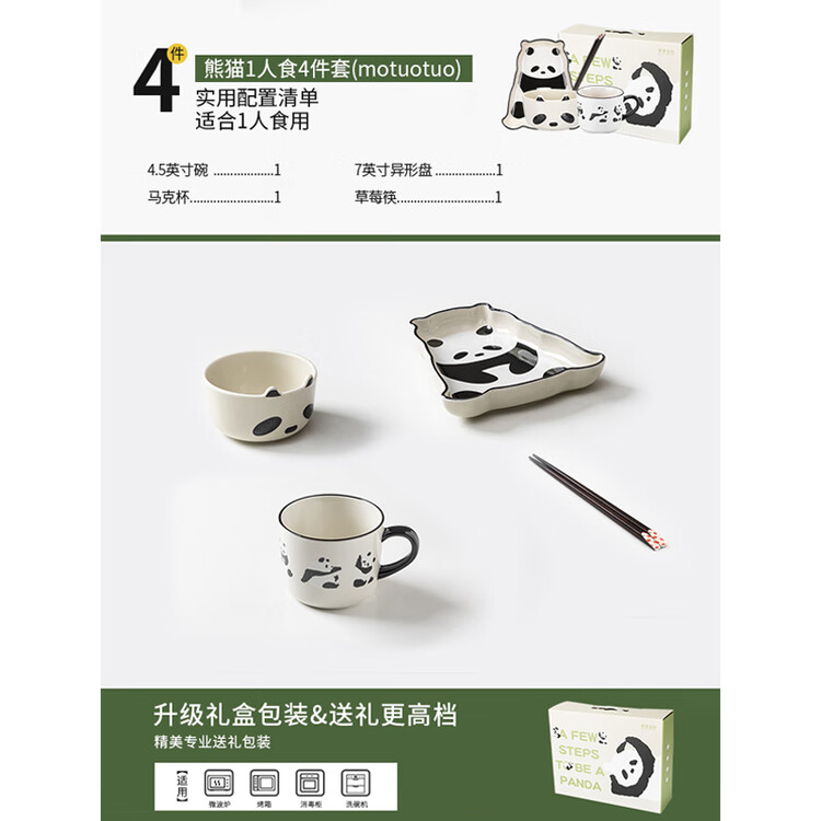 Modengzhu Набор посуды с пандами, 4 предмета, подарочная коробка