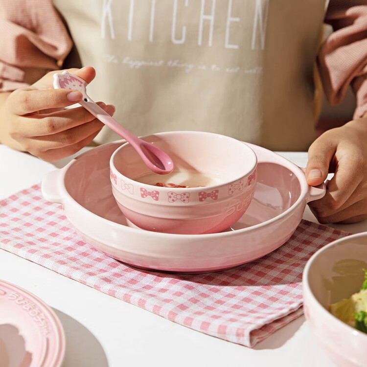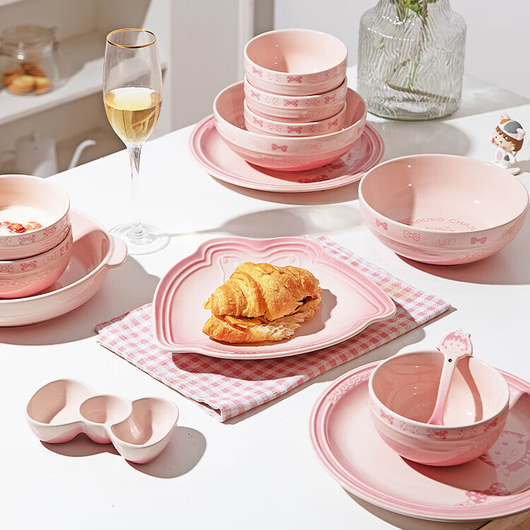 Modengzhufu Набор керамических тарелок и чаш с градиентом сакуры, 1 шт.