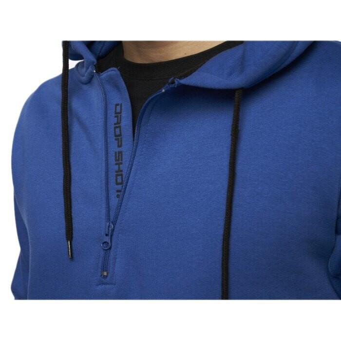 Флисовая толстовка Kilian Zip, флис из хлопка и полиэстера с начесом, капюшон синего цвета и декор в виде логотипа Drop Shot черного цвета.