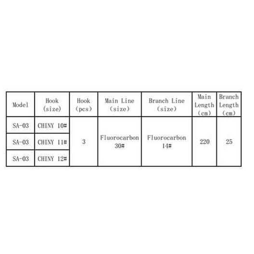 Sabiki M&W SA-04: Оснастки на флюорокарбоне, с прочными и очень острыми крючками типа «CHINU», для ловли на наживку. У них также есть вращающиеся жемчужины, чтобы избежать запутывания, а также СВЕТЯЩИЕСЯ кончики.