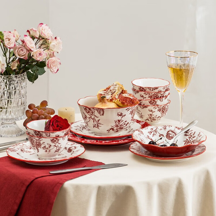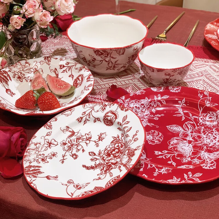 Modengzhufu керамический набор посуды Rose Holiday, 4 предмета: 4 глубоких тарелки 20 см