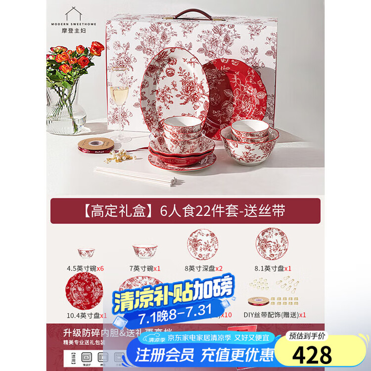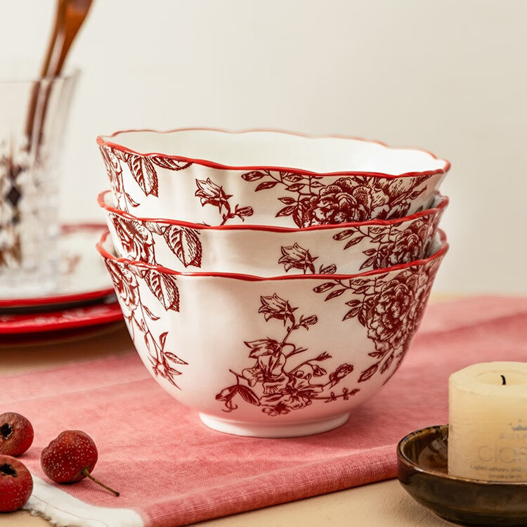 Modengzhufu керамический набор посуды Rose Holiday, 4 предмета: 4 глубоких тарелки 20 см 6 424₽