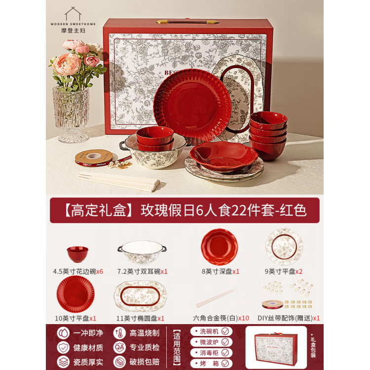 Modengzhufu Rose Holiday Tableware Set, набор посуды, 22 предмета, подарочная коробка Double Happiness Rose