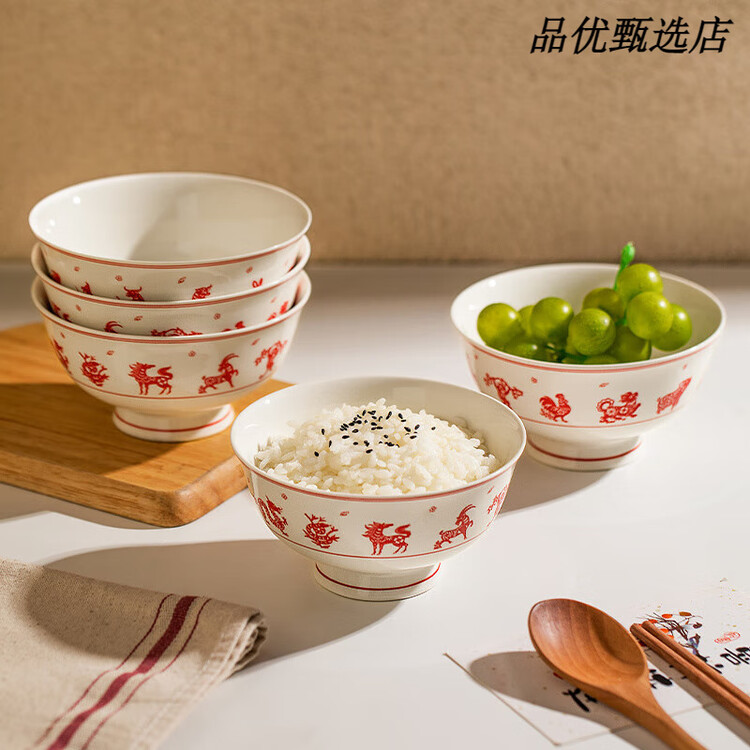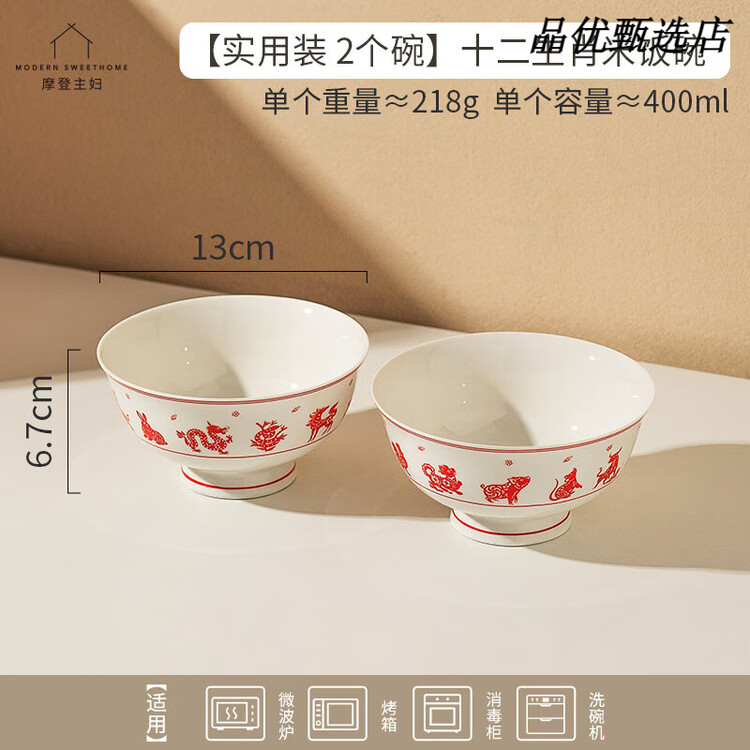 Modengzhufu Керамические чаши для риса Двенадцать знаков зодиака, набор из 2 чаш, 12 см