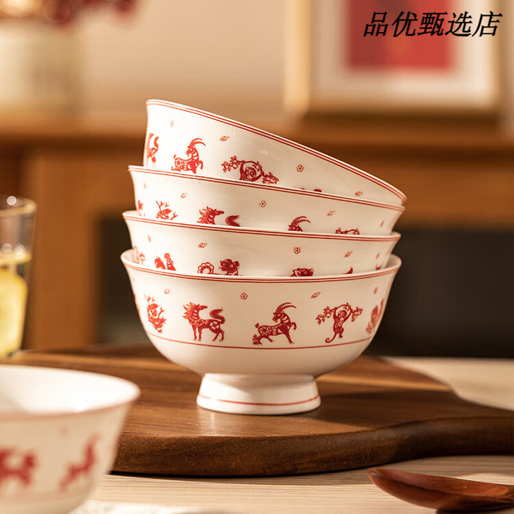 Modengzhufu Керамические чаши для риса Двенадцать знаков зодиака, набор из 2 чаш, 12 см 4 325₽