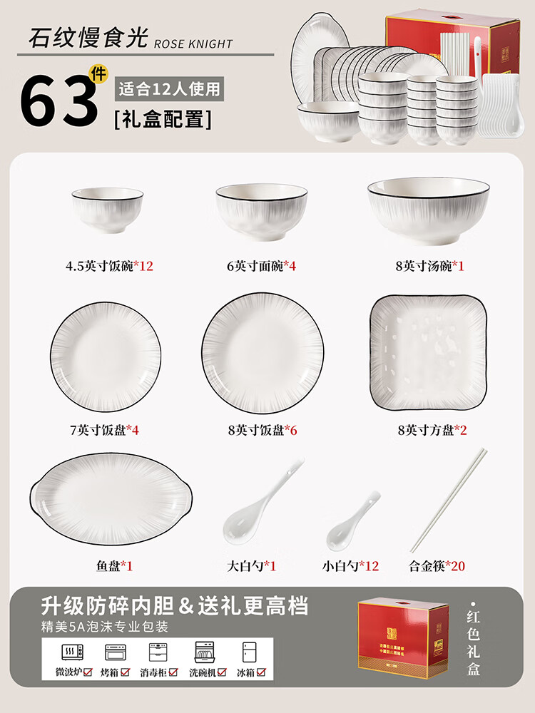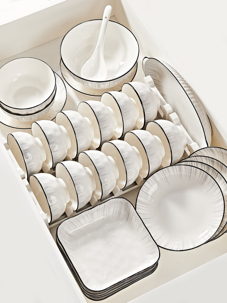 Ciliwanjia Tableware Set, набор посуды из керамики, 63 предмета на 12 персон, Slow Time