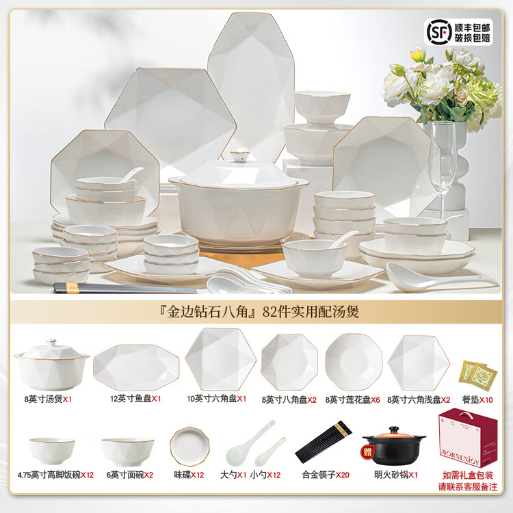 Yichen керамический набор посуды на 12 персон, 82 предмета, подглазурная роспись, Цзиндэчжэнь