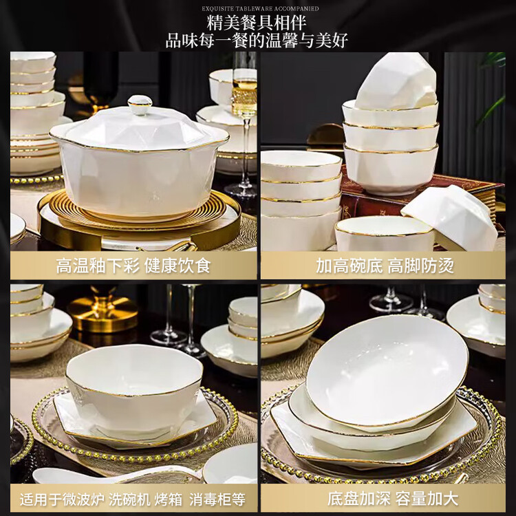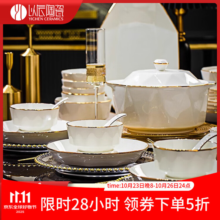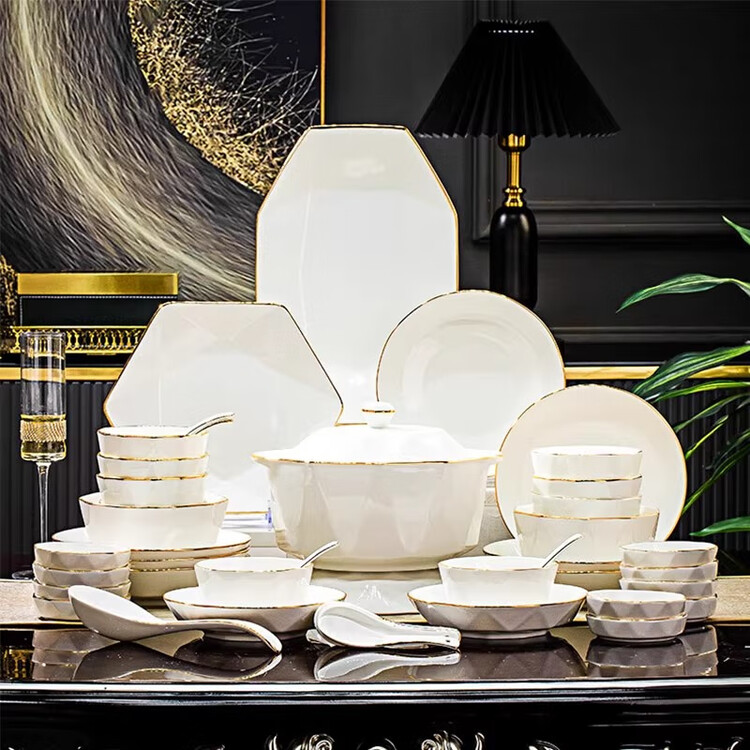 Yichen керамический набор посуды на 12 персон, 82 предмета, подглазурная роспись, Цзиндэчжэнь 14 030₽