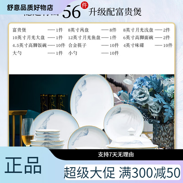 Yichen, набор посуды, фарфор костяной фарфор, круглый, 56 предметов
