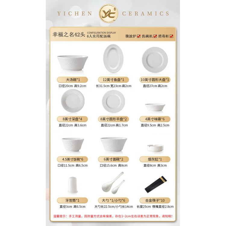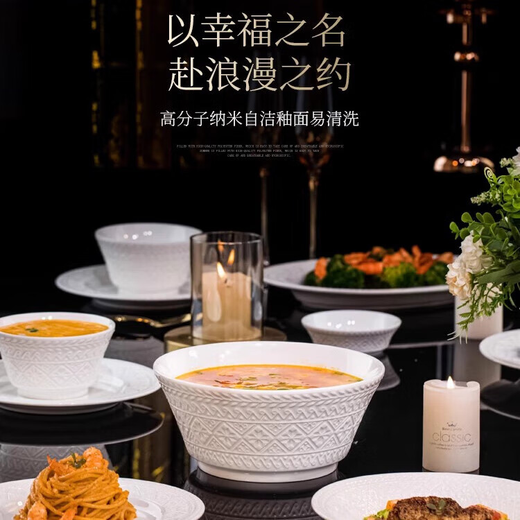 Тип товара: Набор из 42 предметов «Счастье» с большими суповыми мисками (подходит для микроволновой печи и посудомоечной машины)
