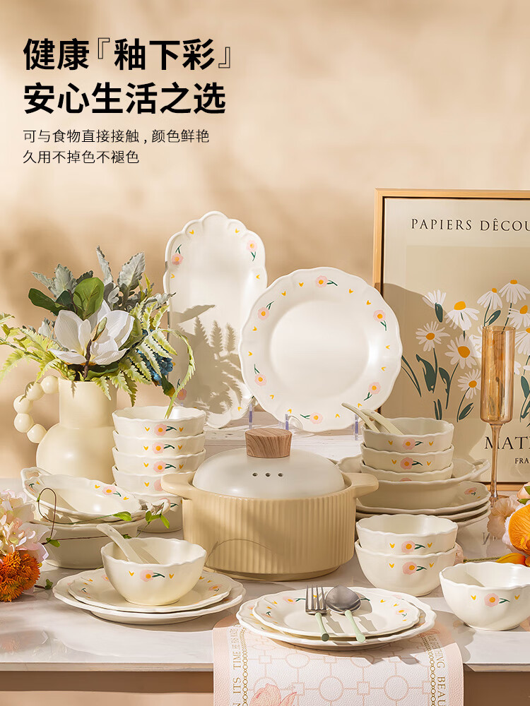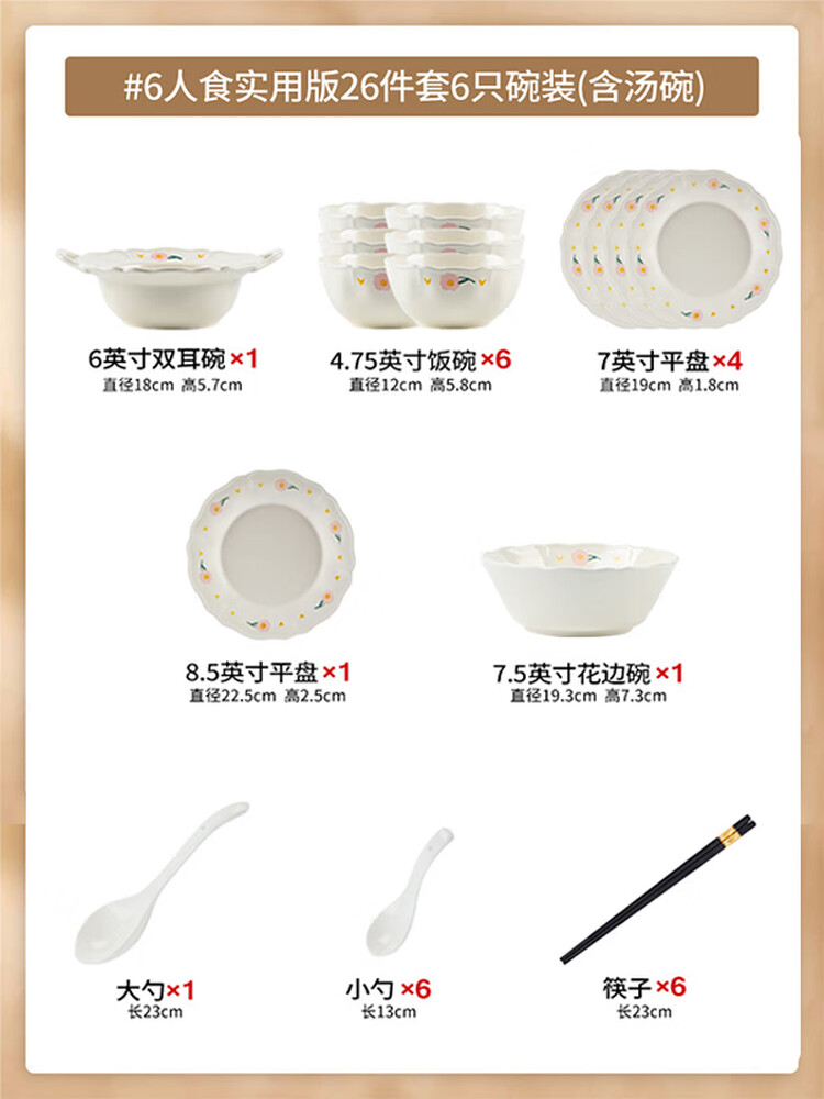 Набор посуды Kangmo в стиле крем, 26 предметов, модель Байшао