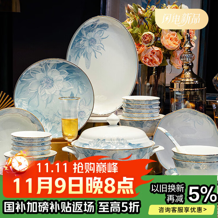 Wanxiang Набор посуды 70 предметов, керамика, Blue Lotus