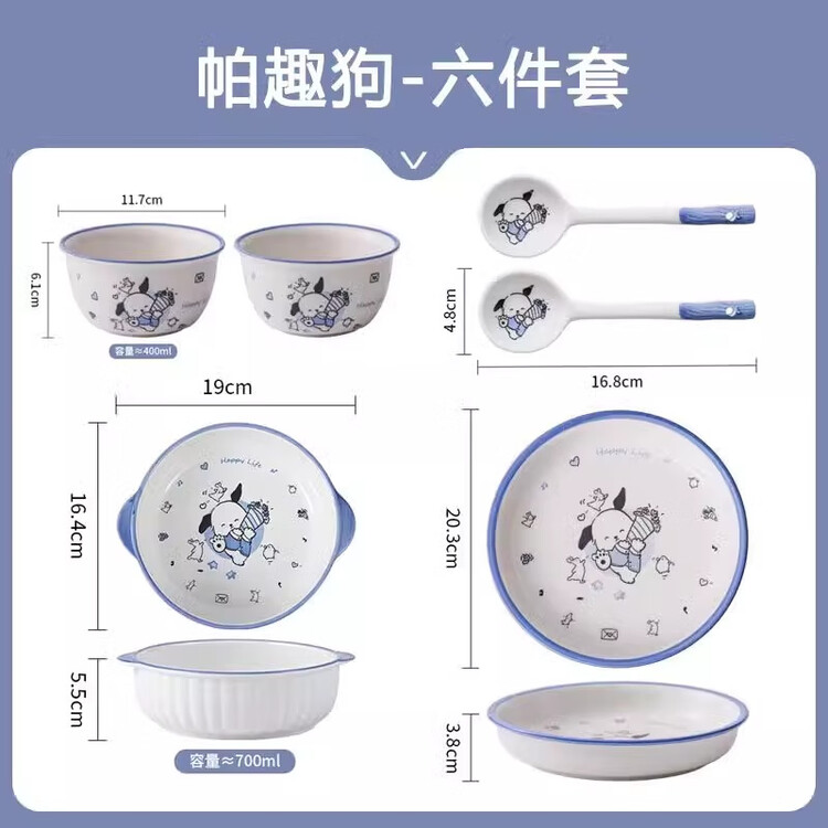 Набор посуды Ceramics с милыми мультяшными рисунками, 6 предметов для двоих 3 398₽