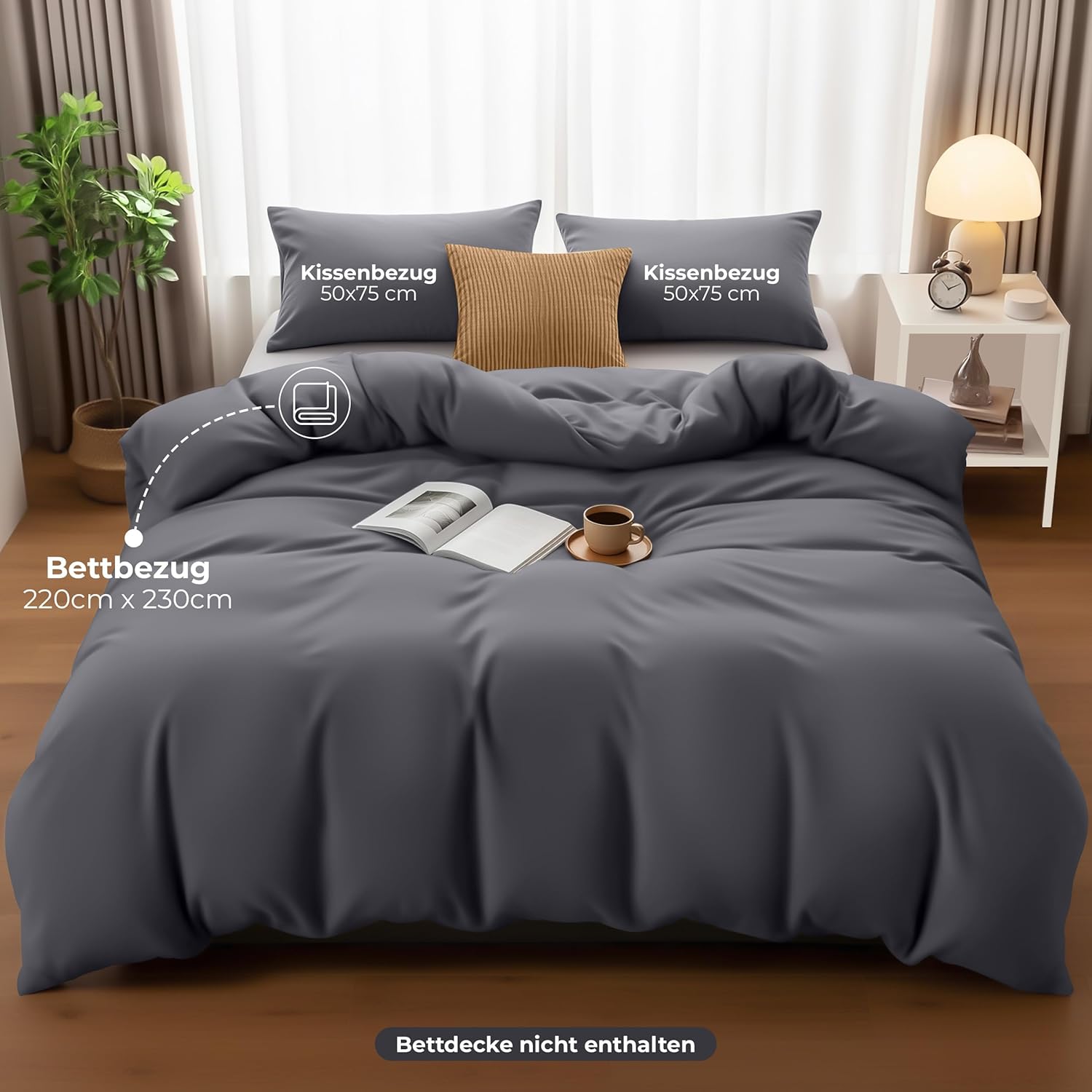 Набор постельного белья Utopia Bedding, пододеяльник из микрофибры 230 x 220 см + 2 наволочки 50 x 75 см, серый