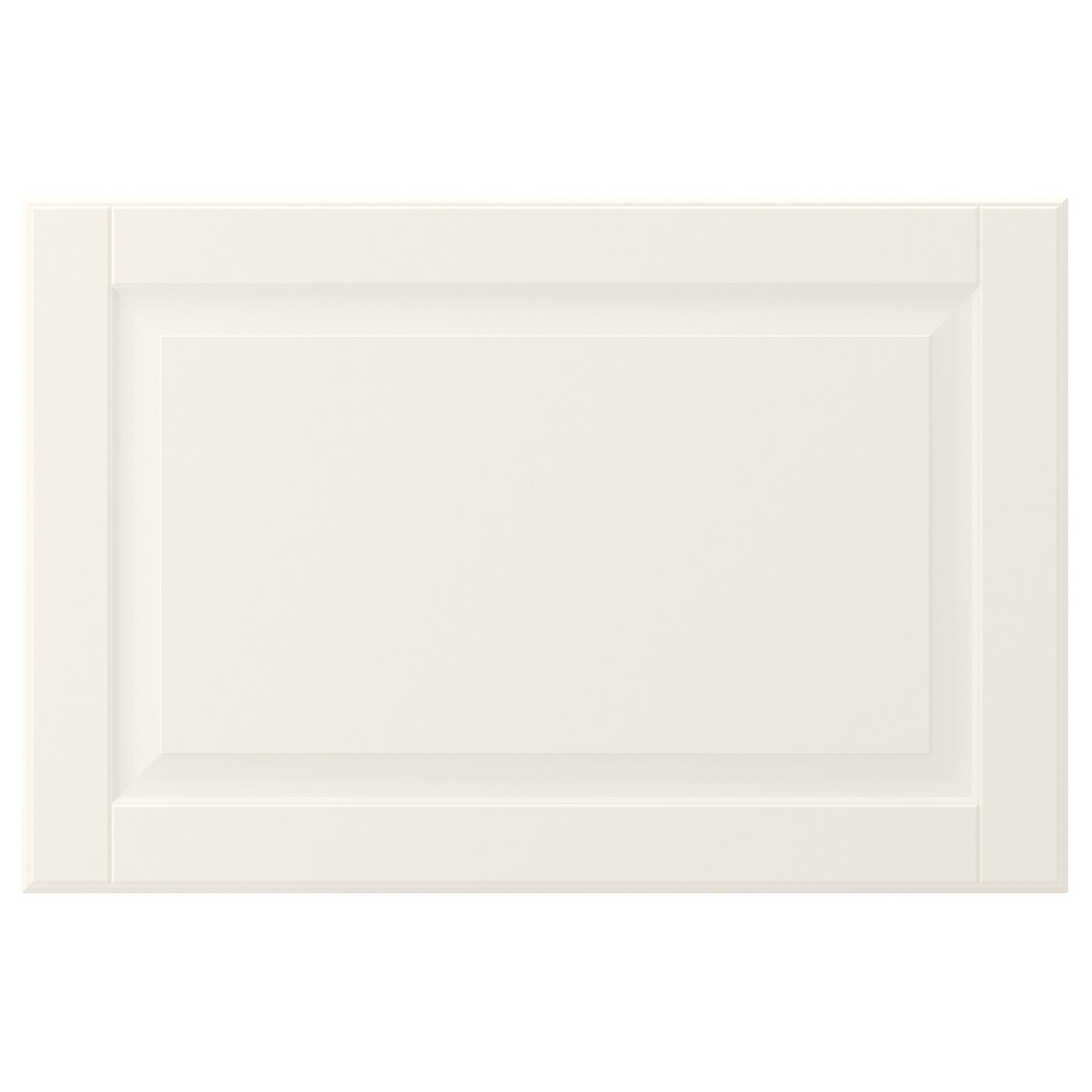 Дверца BODBYN имеет раму и скошенную панель, которые придают ей неповторимый, традиционный характер. Кремовый оттенок белого с оттенком добавит яркости и тепла вашей кухне.