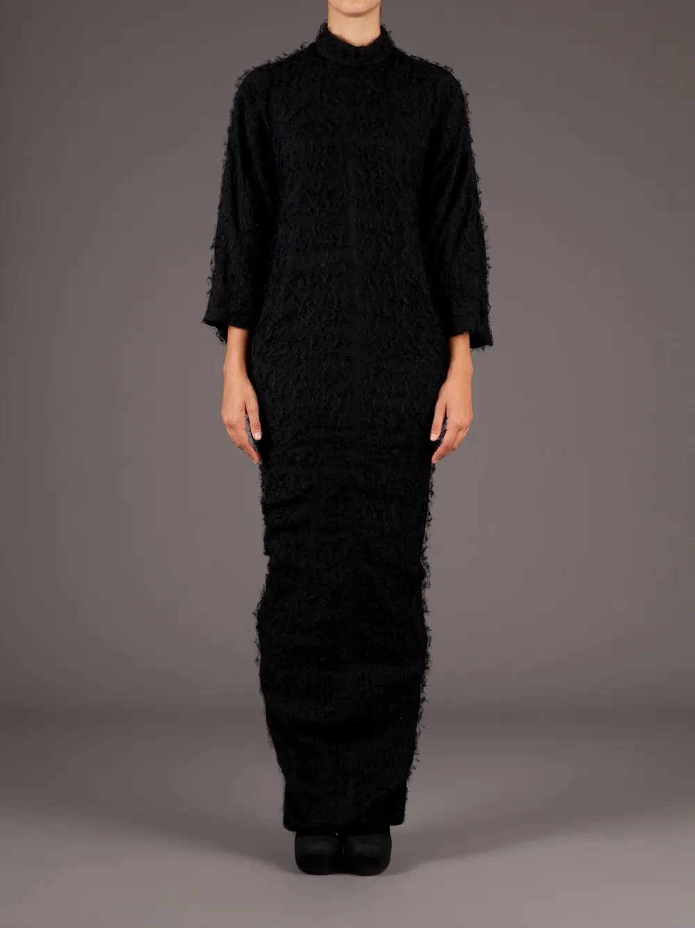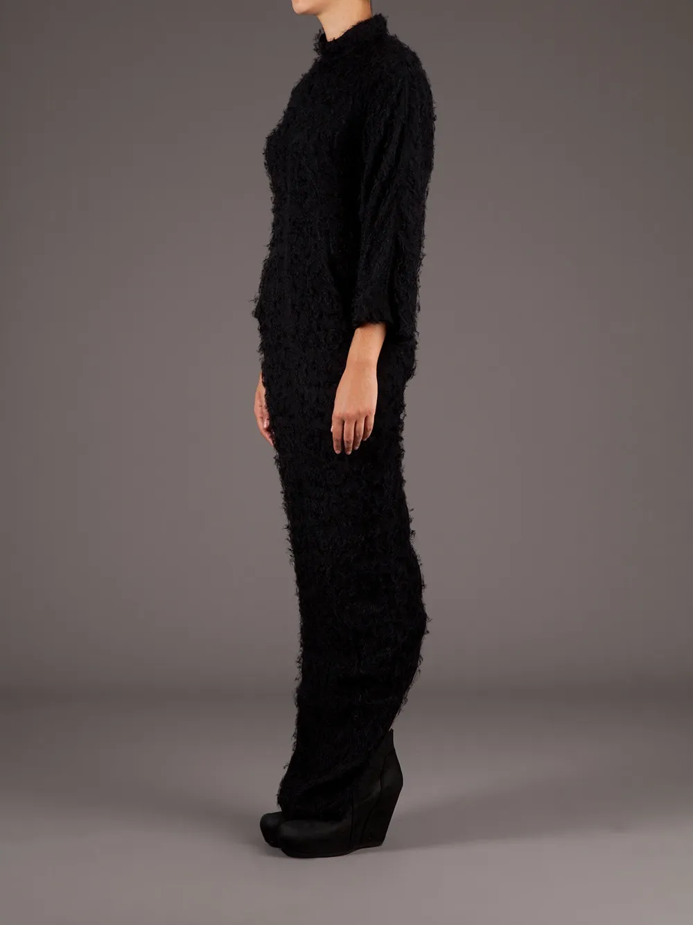 Черное шелковое платье макси от Rick Owens.