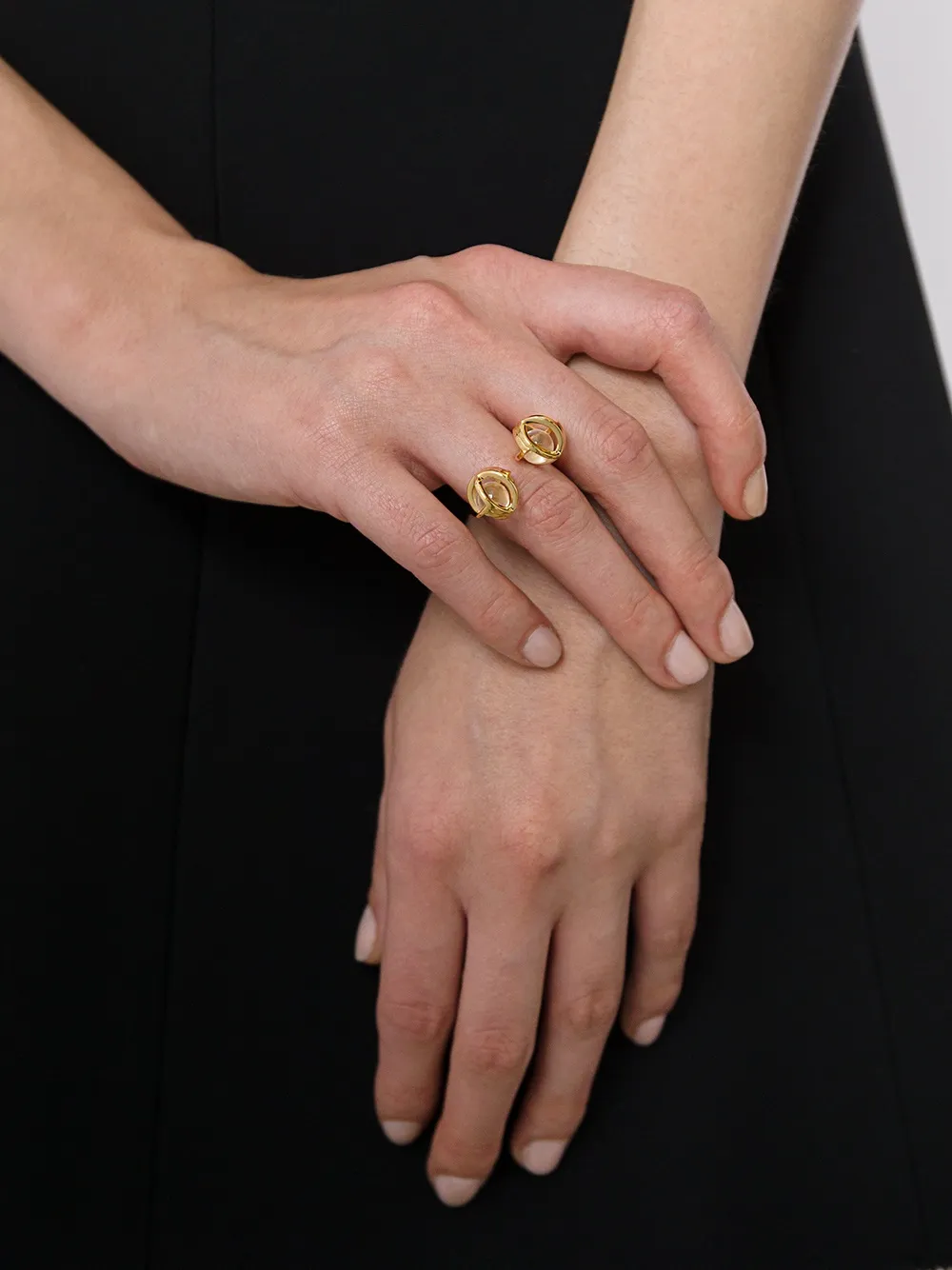 Позолоченное двойное кольцо "Planetaria" с кварцем от Lara Bohinc.