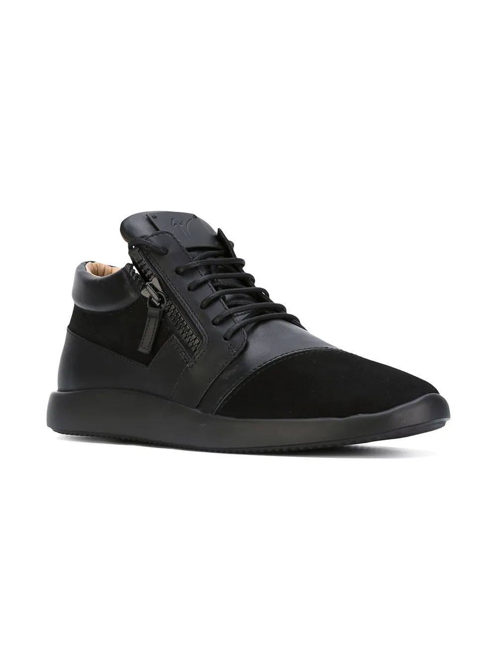 Черные кожаные кроссовки "Runner" от Giuseppe Zanotti Design, уплотненная щиколотка, плоская резиновая подошва