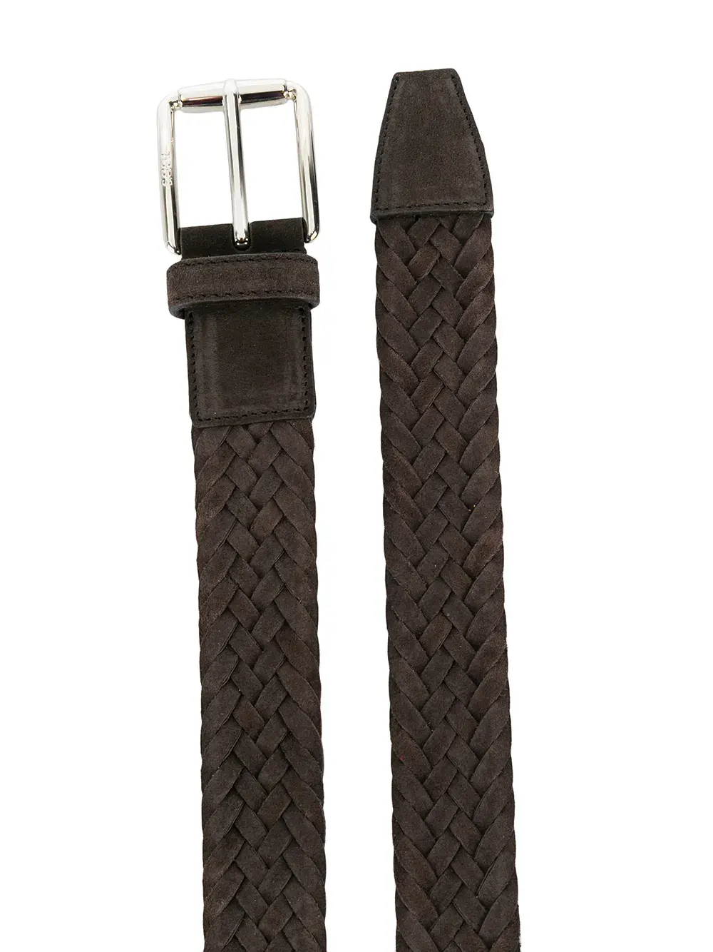 Темно-коричневый замшевый плетеный ремень от Tod"s(Тодс), тканый дизайн, серебристая пряжка, регулируемый размер