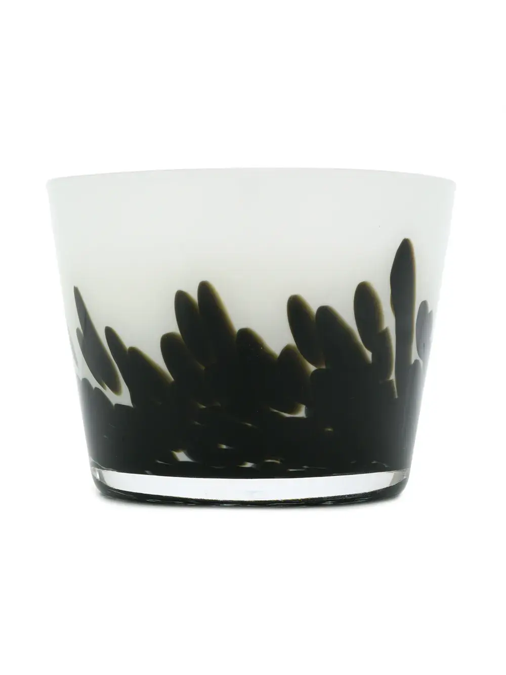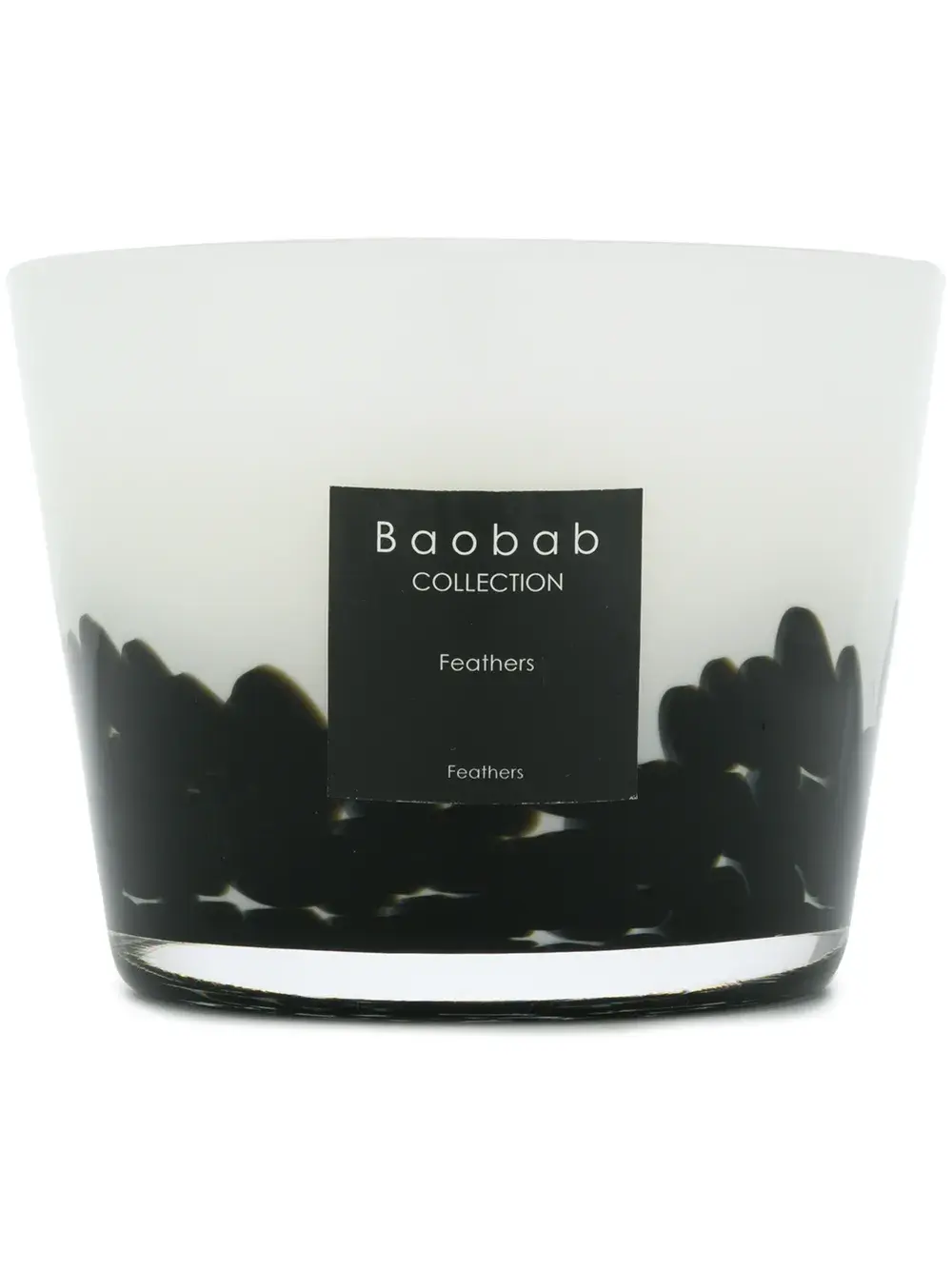 Свеча Feathers от Baobab Collection в стеклянном подсвечнике черного и белого цвета.