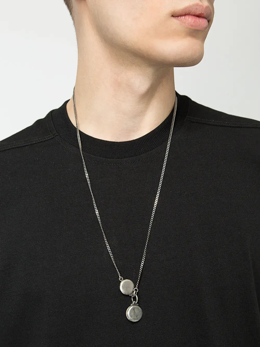 Серебристое серебряное колье с медальонами от Werkstatt:München.Модель в стиле унисекс.