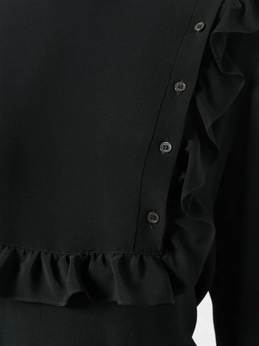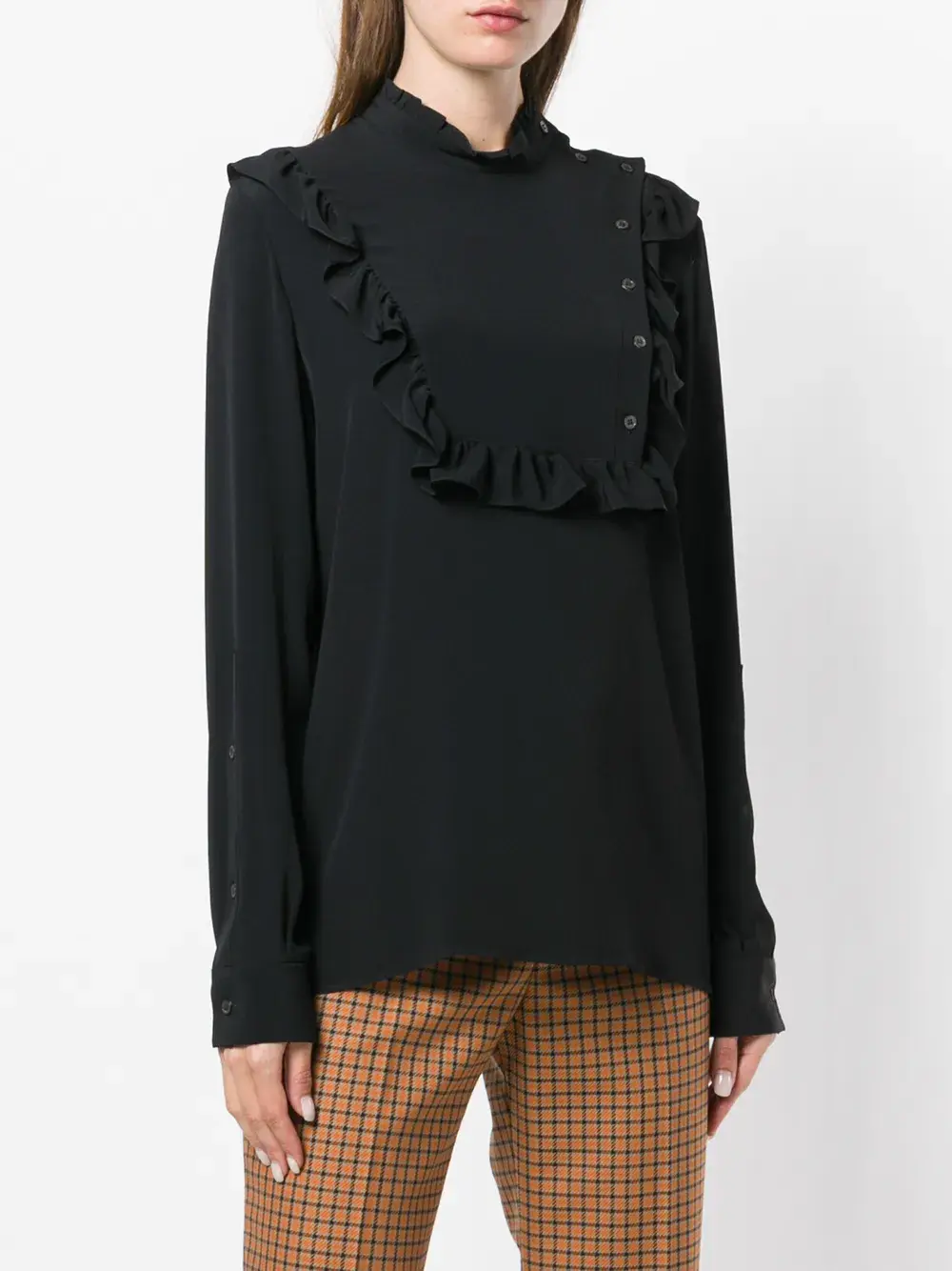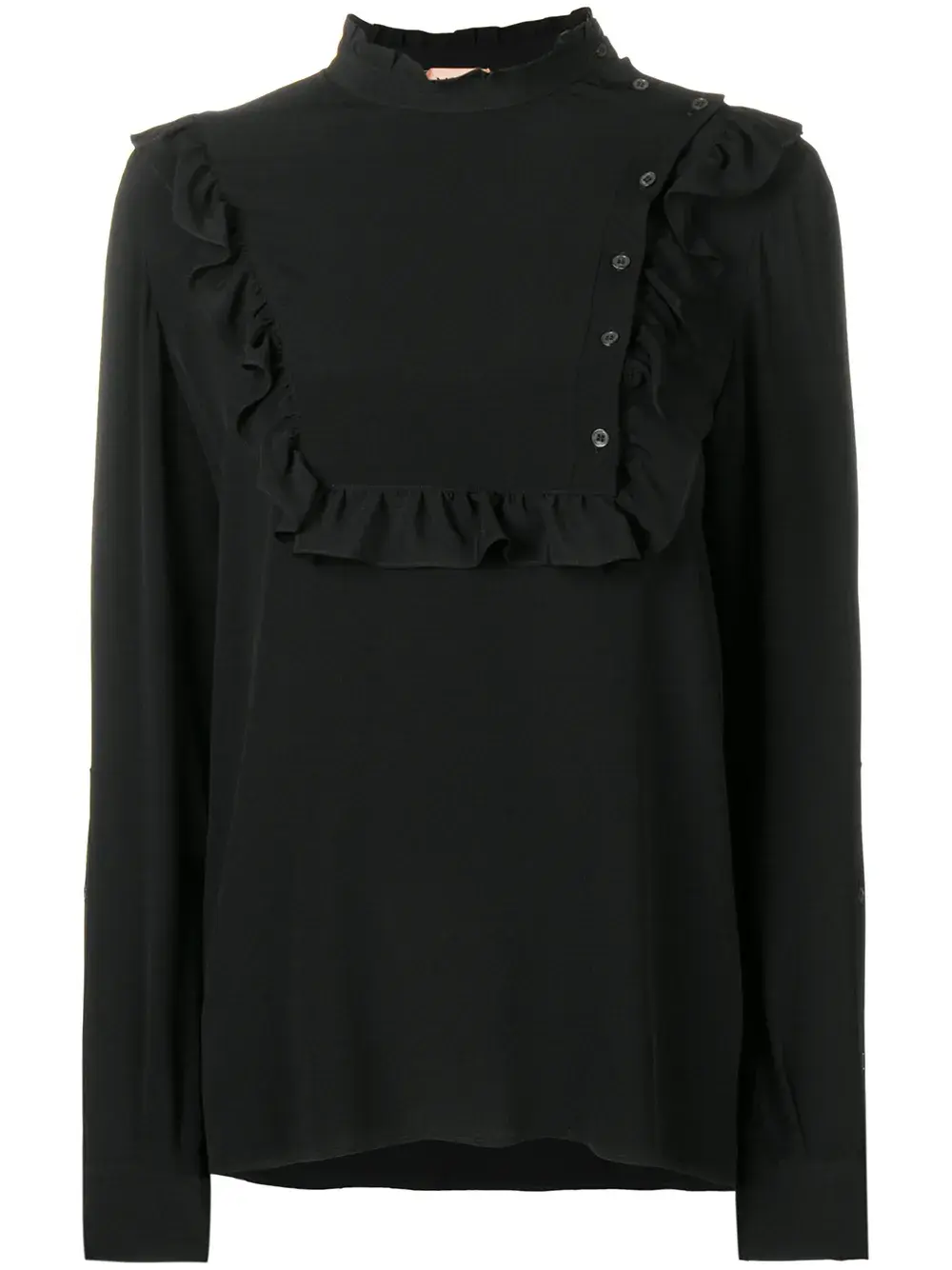 Длинные рукава, манжеты на пуговицах и свободный силуэт, цвет черный
