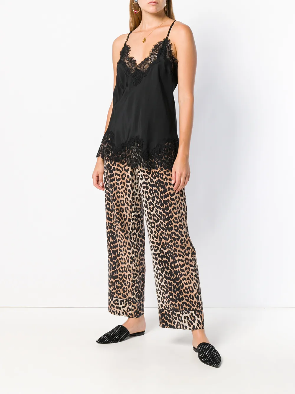 Черный топ из шелка и хлопка с кружевной отделкой от Gold Hawk, модель без рукавов, тонкие лямки-спагетти, регулируемые лямки, v-образная горловина, узкий крой, кружевная отделка с фигурным краем