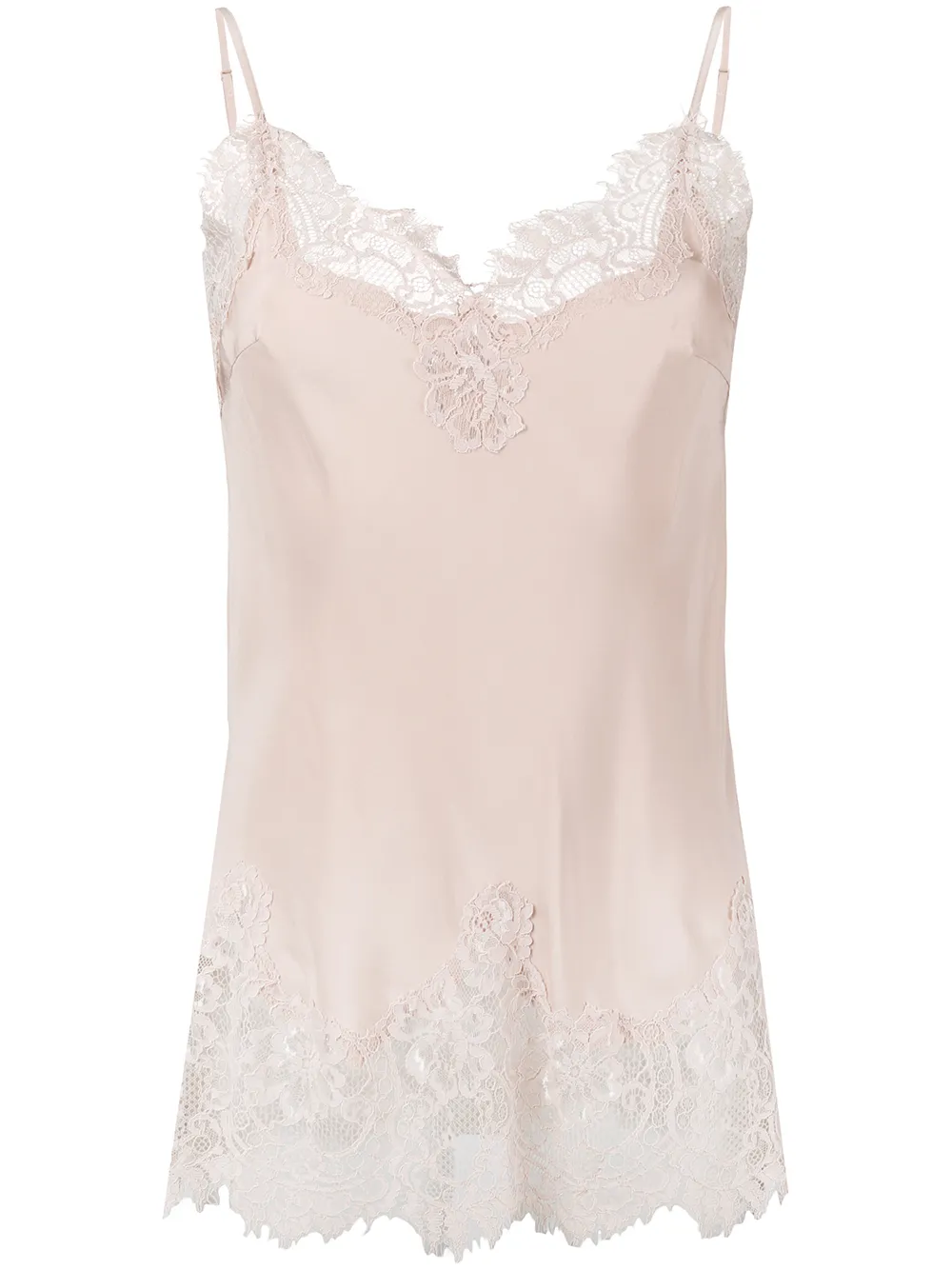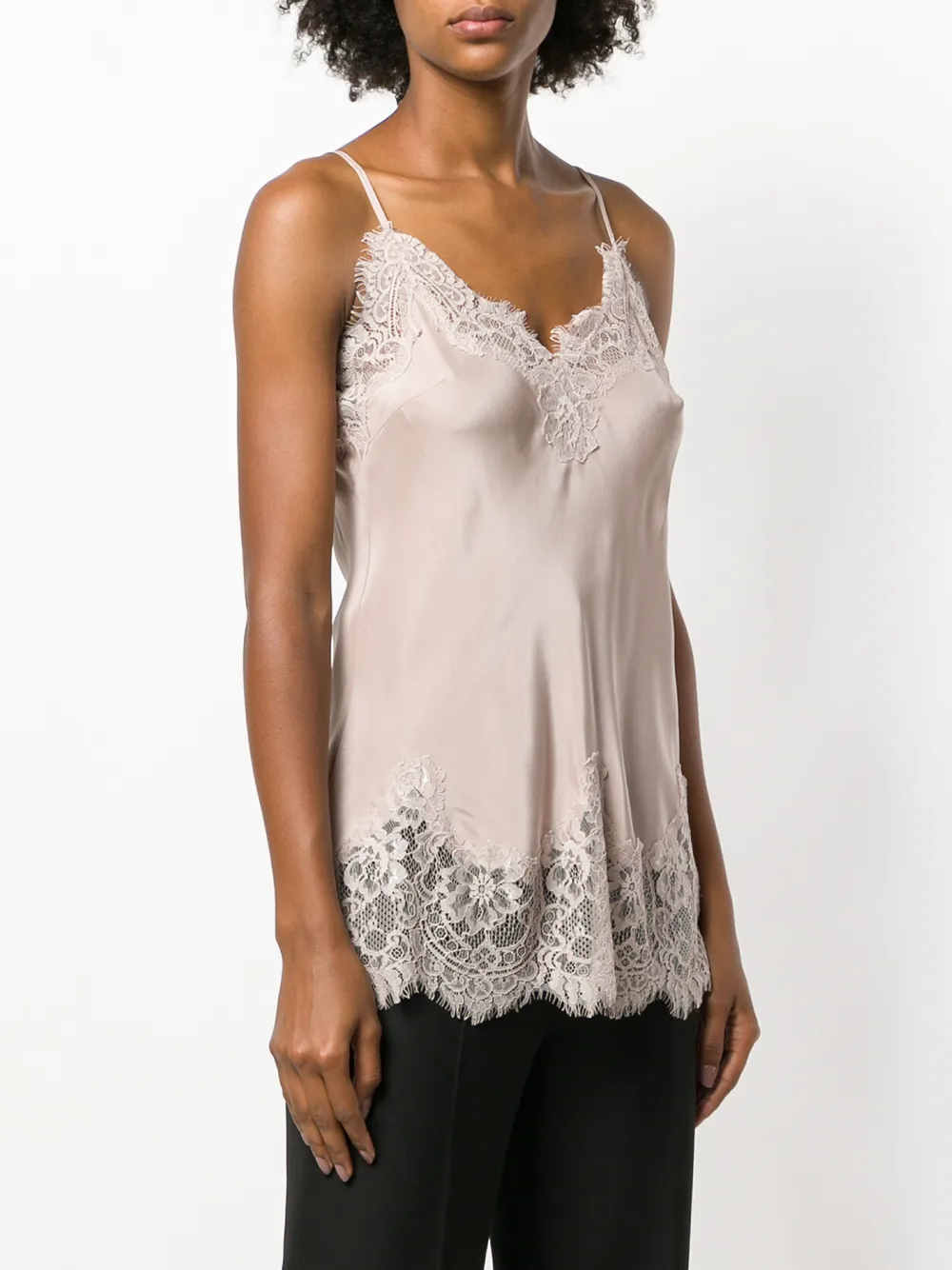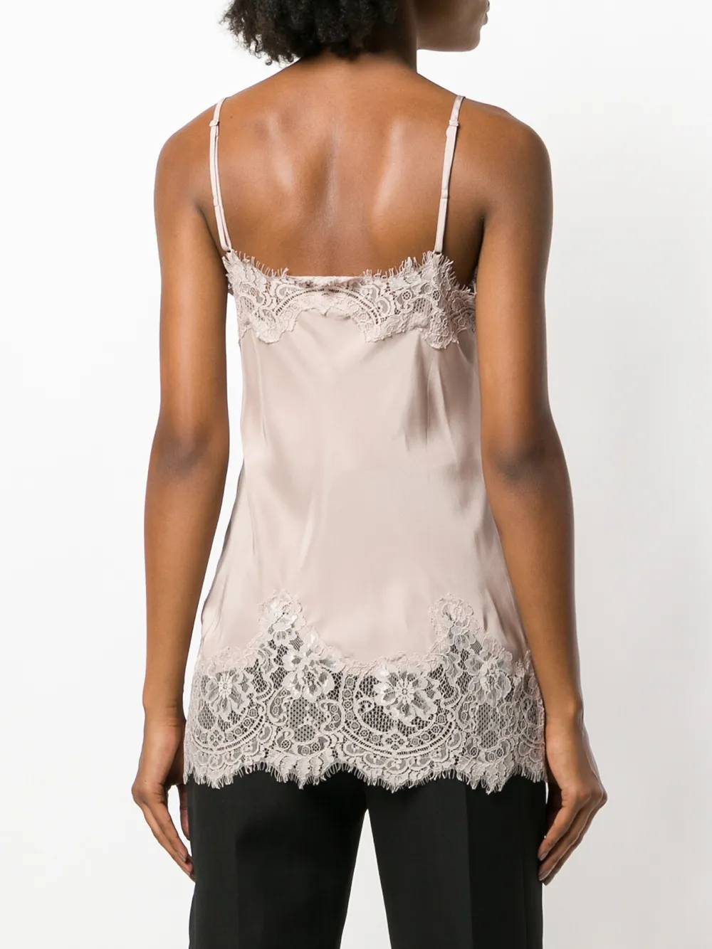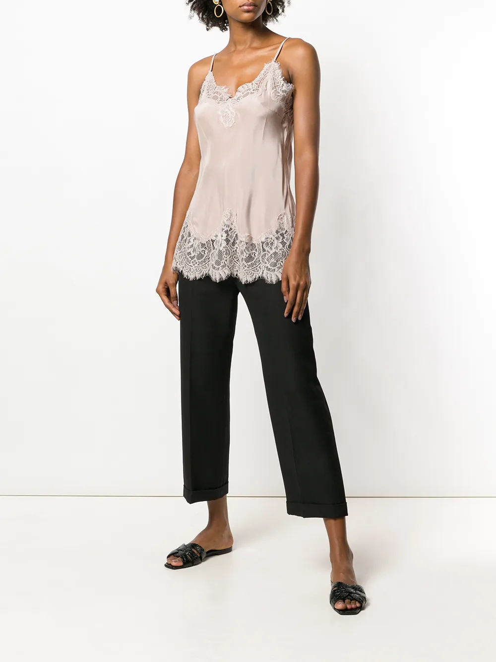 Топ с кружевной отделкой от Gold Hawk, тонкие лямки-спагетти, модель слип-он, без застежки и закруглённый подол с кружевом