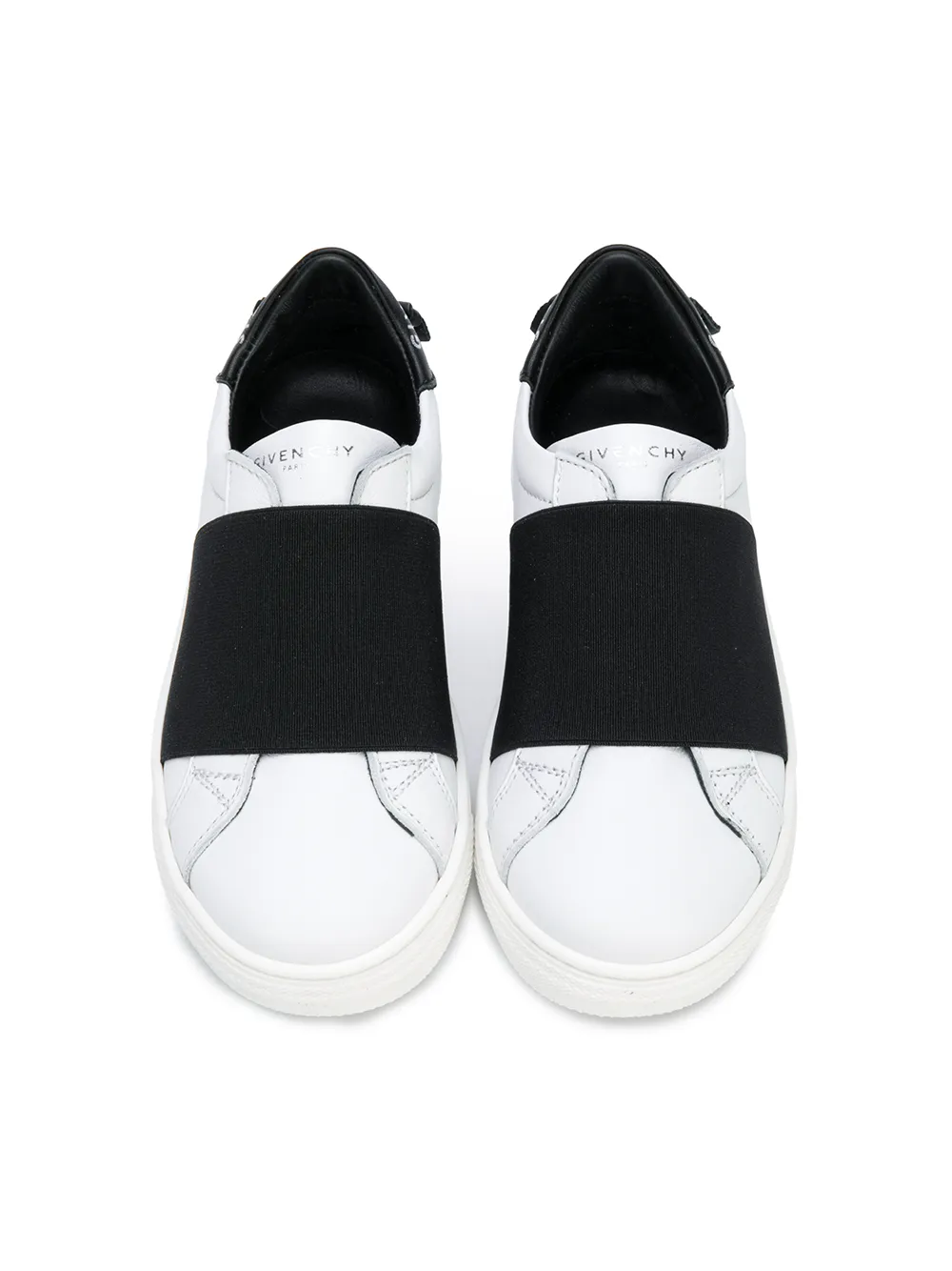 Черно-белые кроссовки из телячьей кожи с контрастными деталями от Givenchy Kids, закругленный носок, плоская подошва, контрастные панели, заплатка с логотипом на язычке, контрастная стойка на каблуке