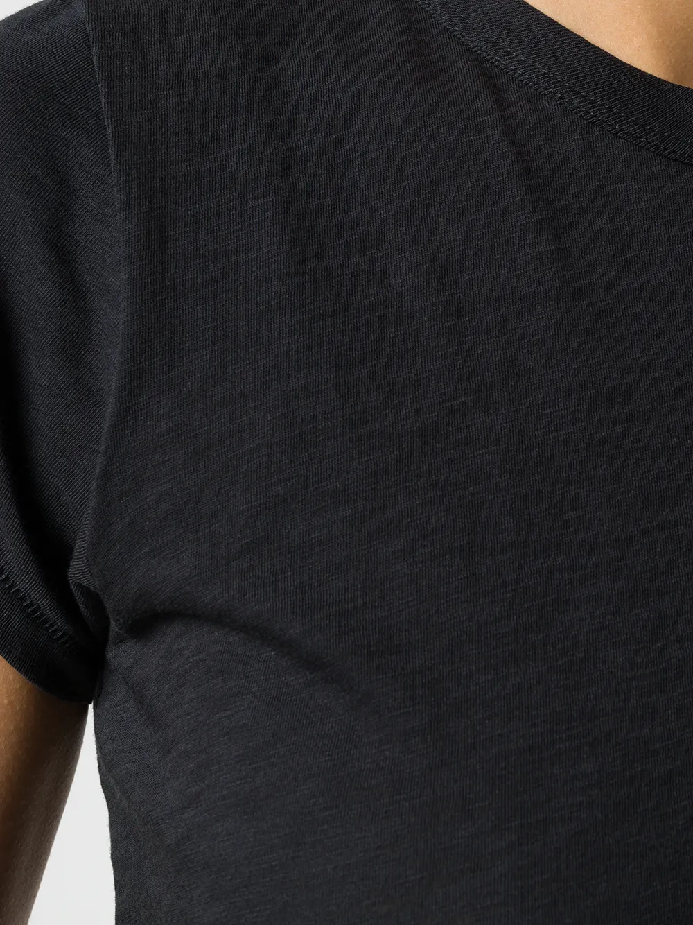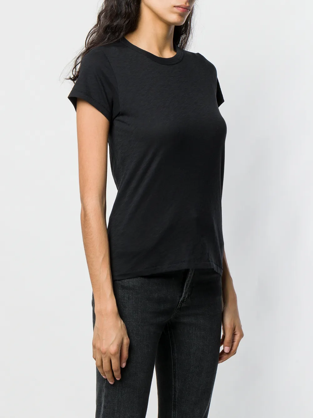 Приталенная рубашка от Rag & Bone, круглый вырез, короткие рукава и прямой крой, цвет черный