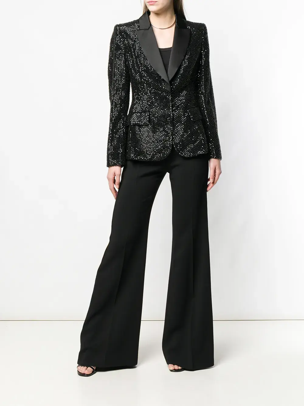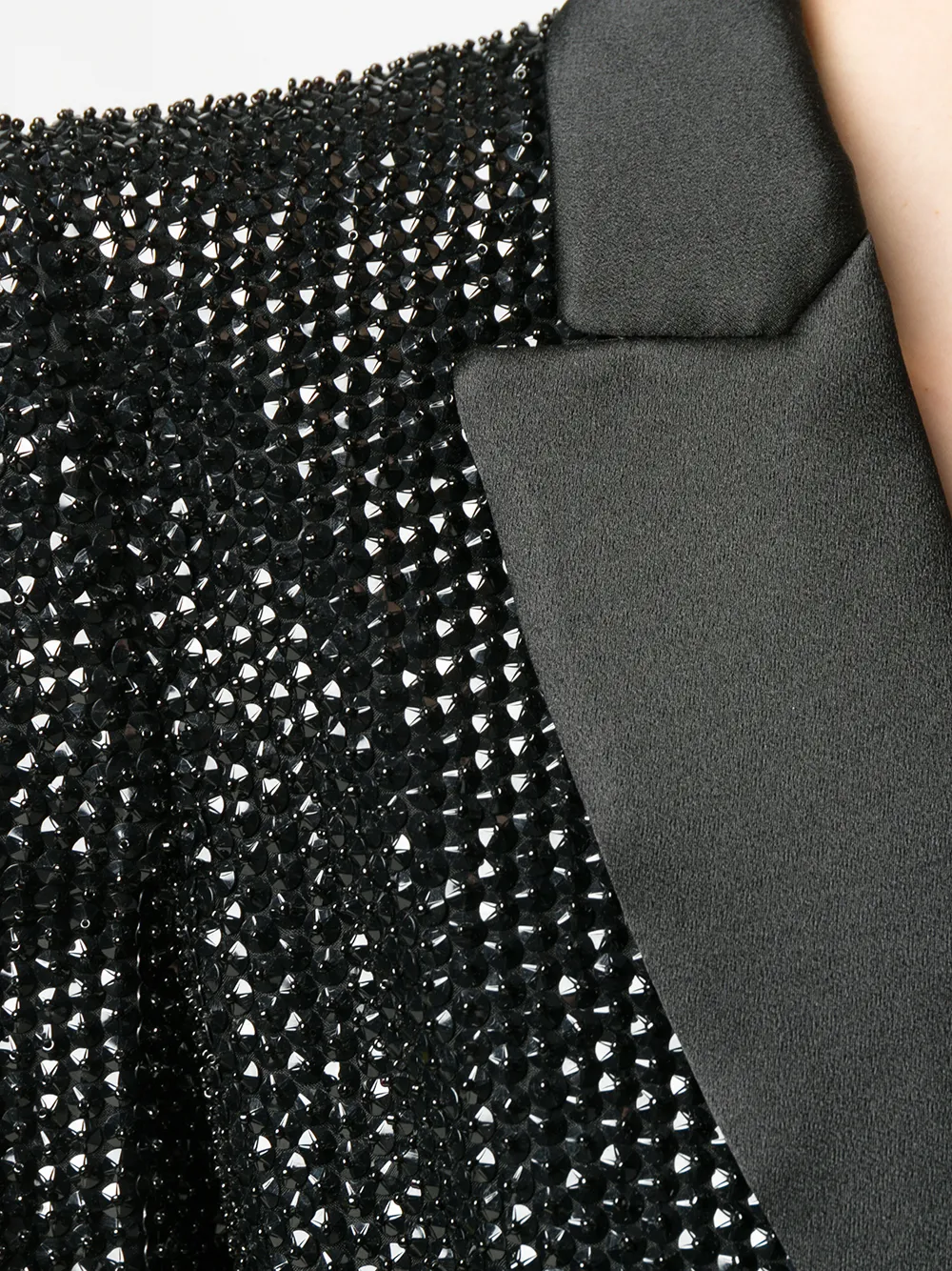 Блейзер с заклепками от Alberta Ferretti, контрастные лацканы, потайная застежка спереди, передние карманы с клапанами, структурированные плечи, длинные рукава и цельная подкладка, цвет черный