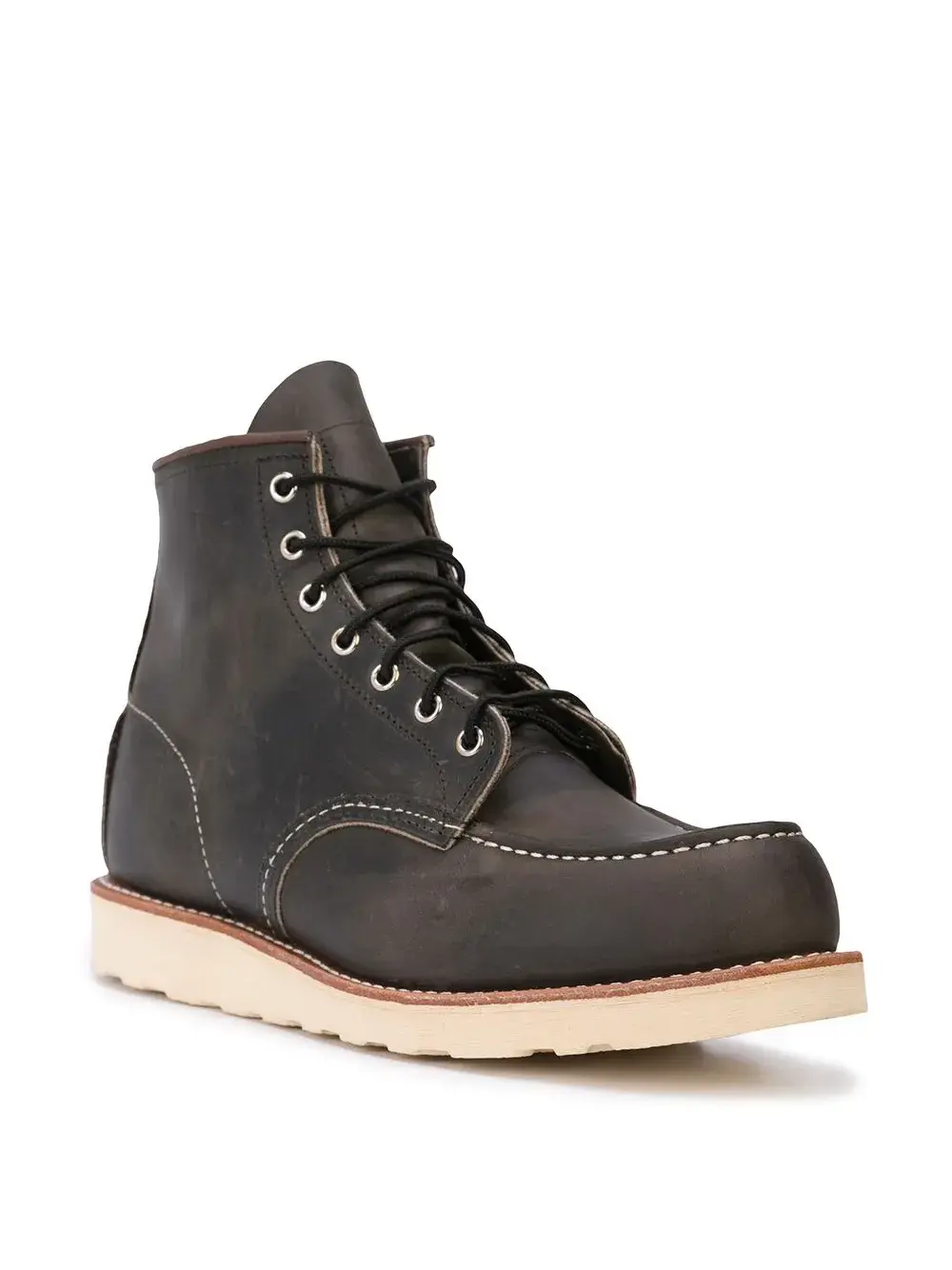 Ботинки Moc от Red Wing Shoes, закругленный носок, шнуровка спереди, ремешок на щиколотке и пряжка сбоку и белая резиновая подошва