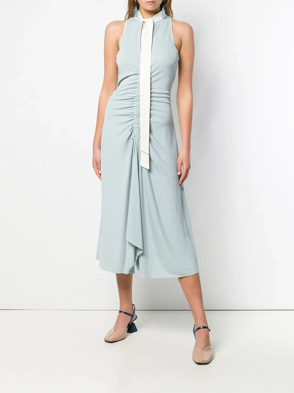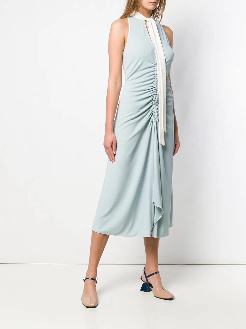 Платье миди со сборками от Ssheena, модель без рукавов, горловина на ленточной завязке, дизайн со сборкой, расклешенный силуэт и дизайн в двух тонах
