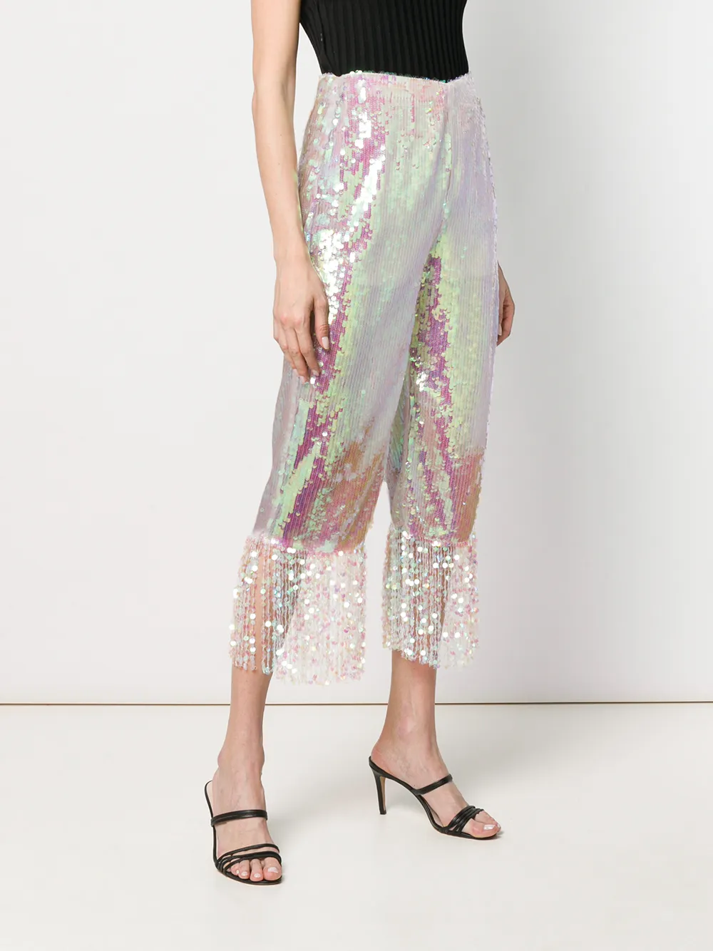 Блестящие укороченные брюки от Circus Hotel, завышенная талия, эластичный пояс, укороченная длина, украшение из пайеток и прямые брючины