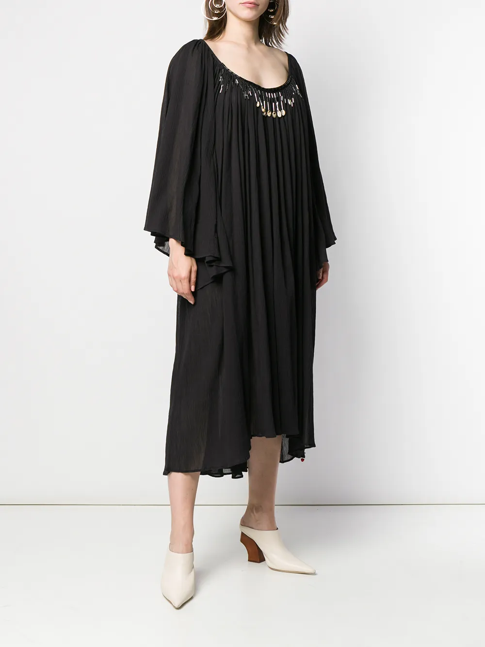 Декорированное платье-туника от Giacobino, круглый вырез, длинные рукава, свободный стиль и длинные рукава, цвет черный