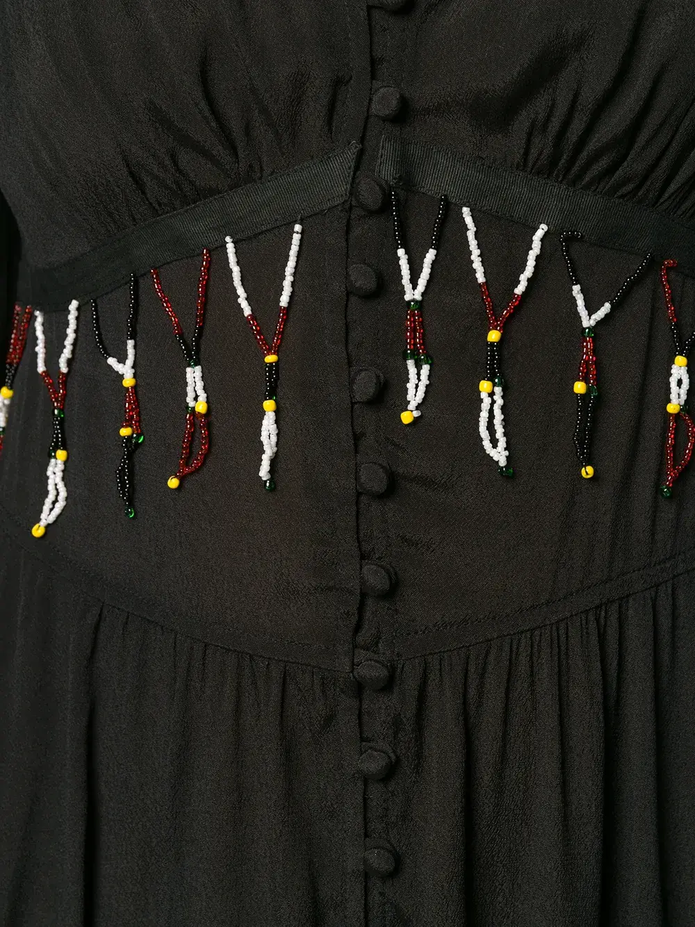 Платье с бисером от Giacobino, V-образная горловина, длинные рукава, застежка на пуговицах спереди и короткая длина, цвет черный