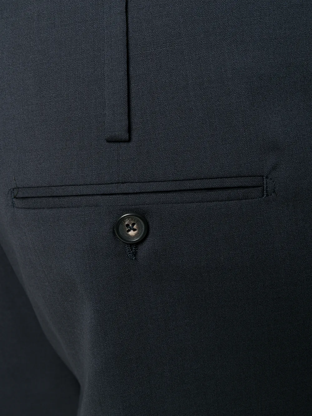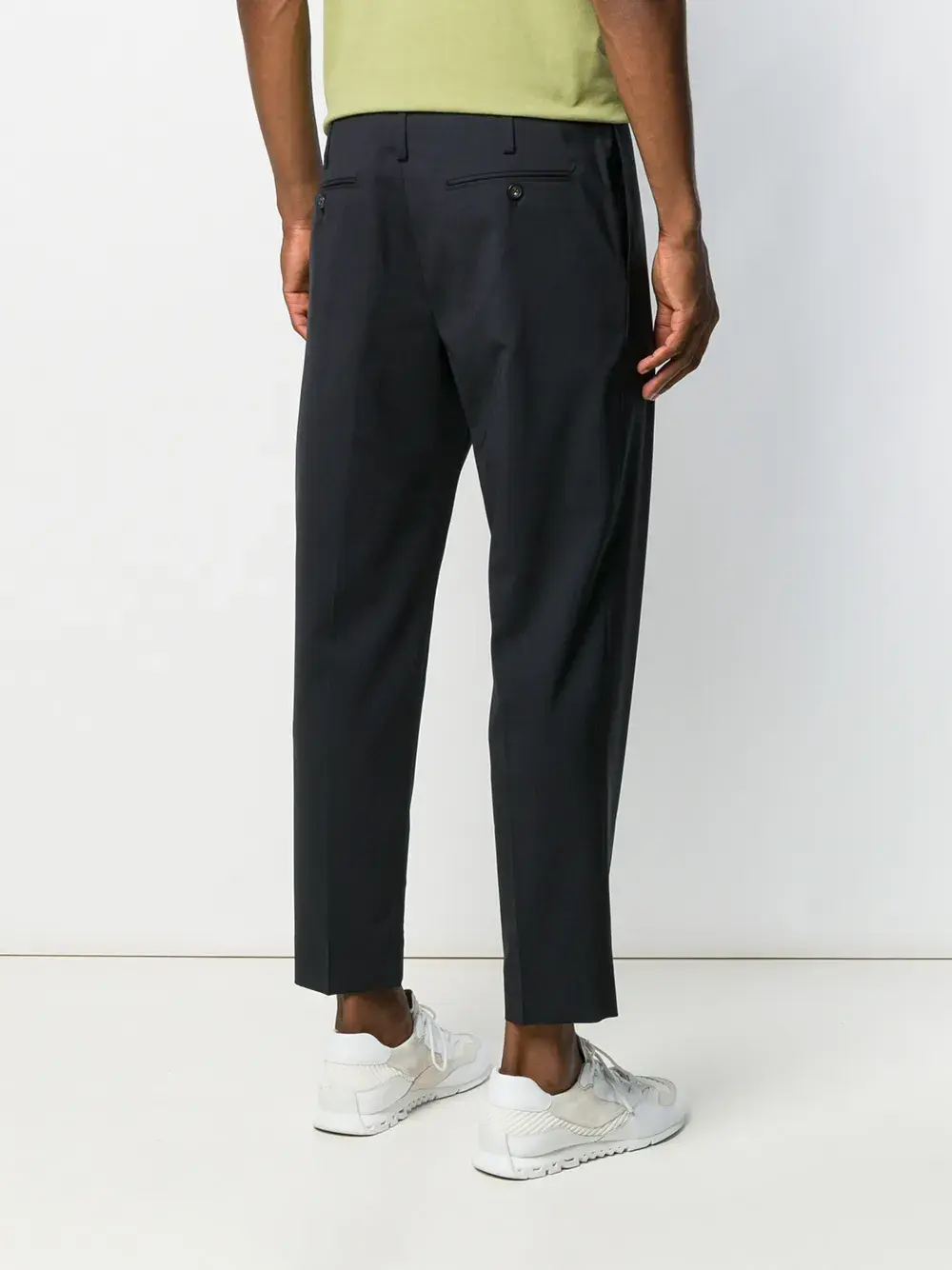 Укороченные брюки прямого кроя от Be Able, завышенная посадка, ширинка на молнии с пуговицей, пояс с петлями для ремня, боковые карманы и задние карманы