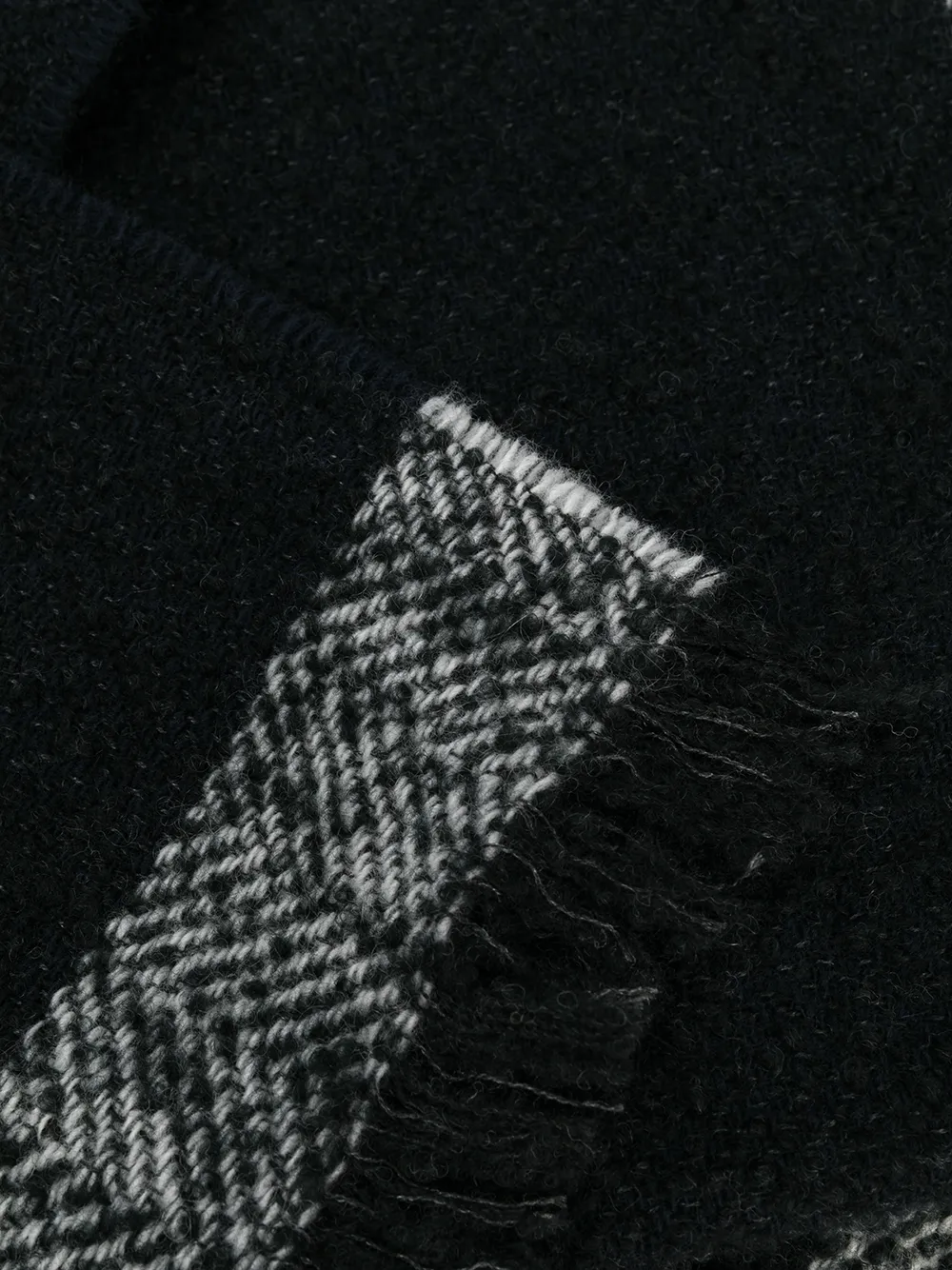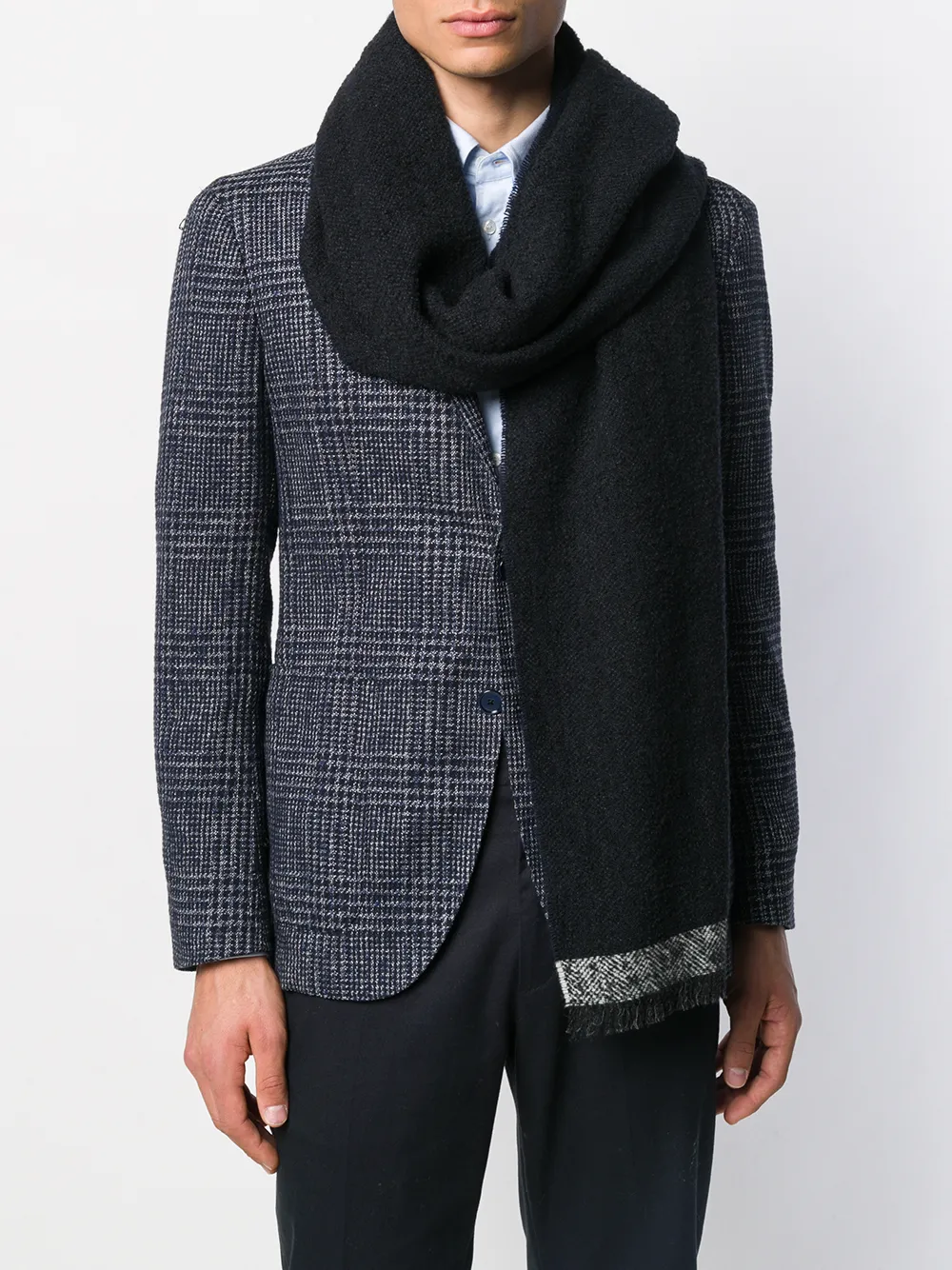 Шарф с узором в елочку от Zanone. Детали с бахромой.