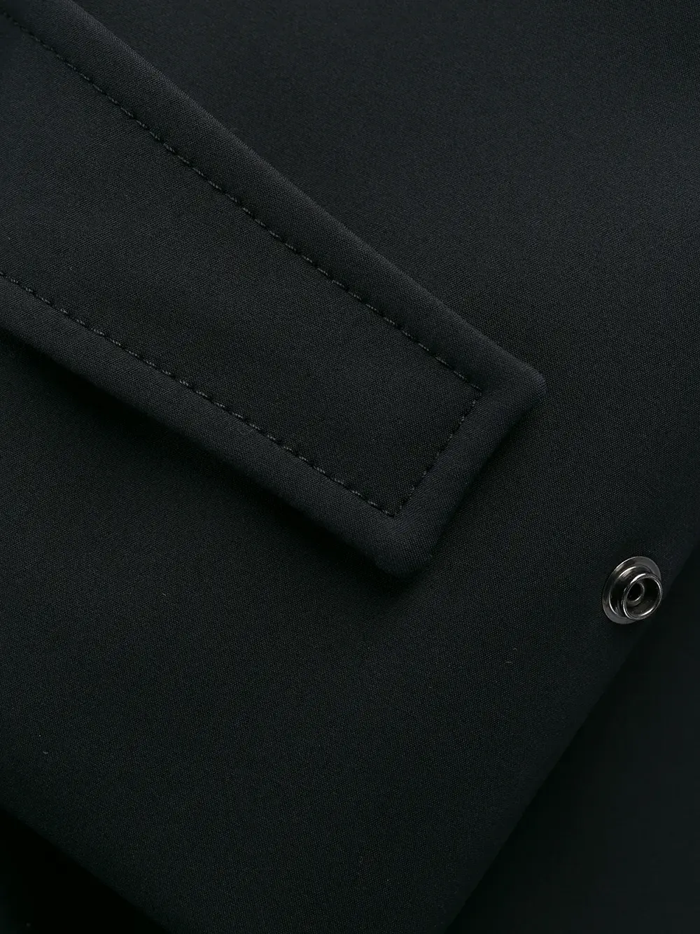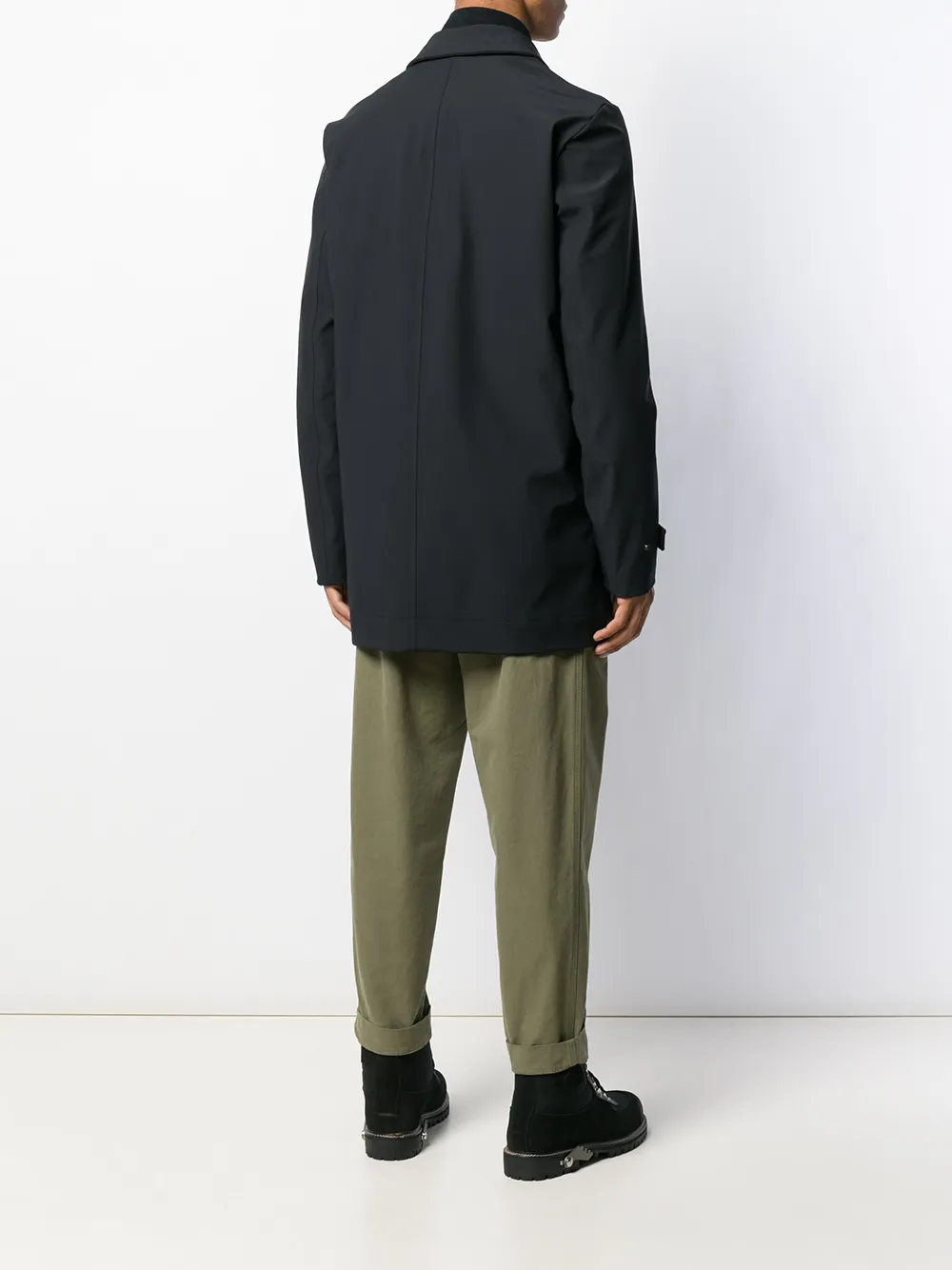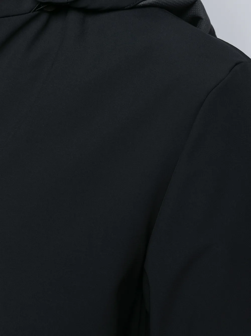 Тренч Field от Peuterey, капюшон, потайная застежка, длинные рукава, боковые карманы и короткая длина, цвет черный