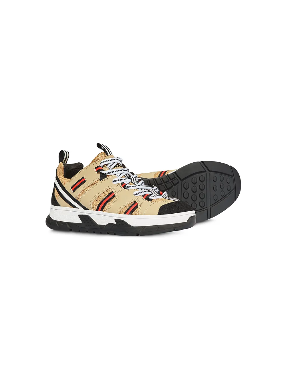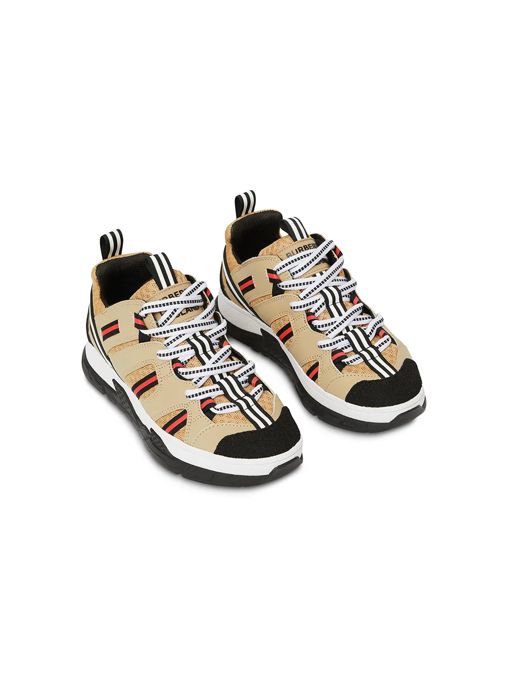 Кроссовки Union от Burberry Kids, закругленный носок, шнуровка спереди, петля для подтягивания сзади, панели из сетки, заплатка с логотипом на язычке, тисненый логотип и резиновая подошва