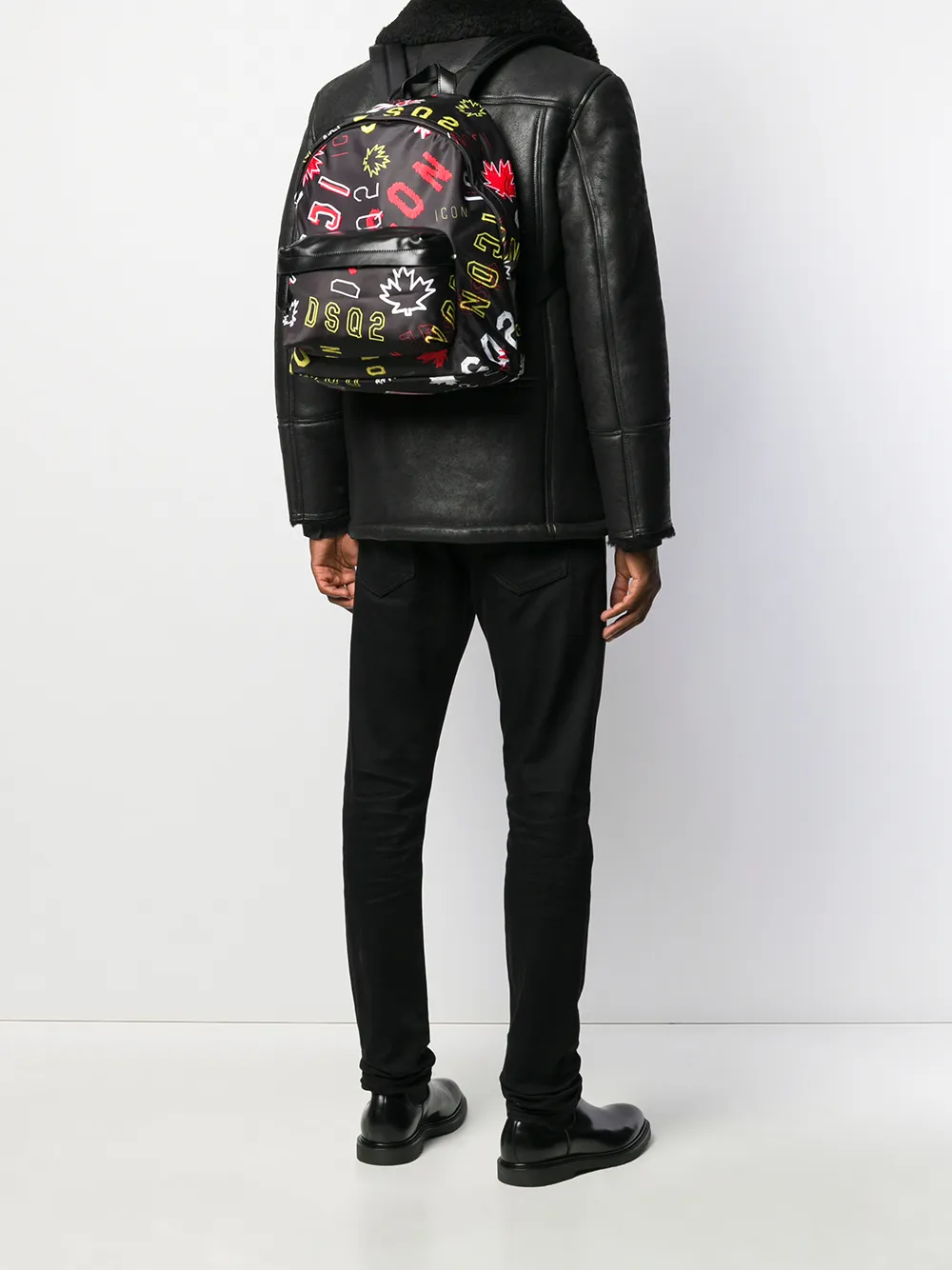 Рюкзак с принтом Icon от Dsquared2 (Дискуэд), верхняя ручка, регулируемые лямки , передний карман на молнии, застежка на молнии сверху, главный внутренний отдел, внутренний карман на молнии и внутренняя вставка с логотипом, цвет черный