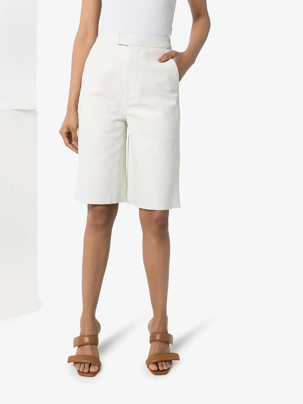Шорты Manu от Remain, средняя посадка, потайная застежка, боковые карманы, прошитые панели, длина по колено и задние карманы, цвет белый
