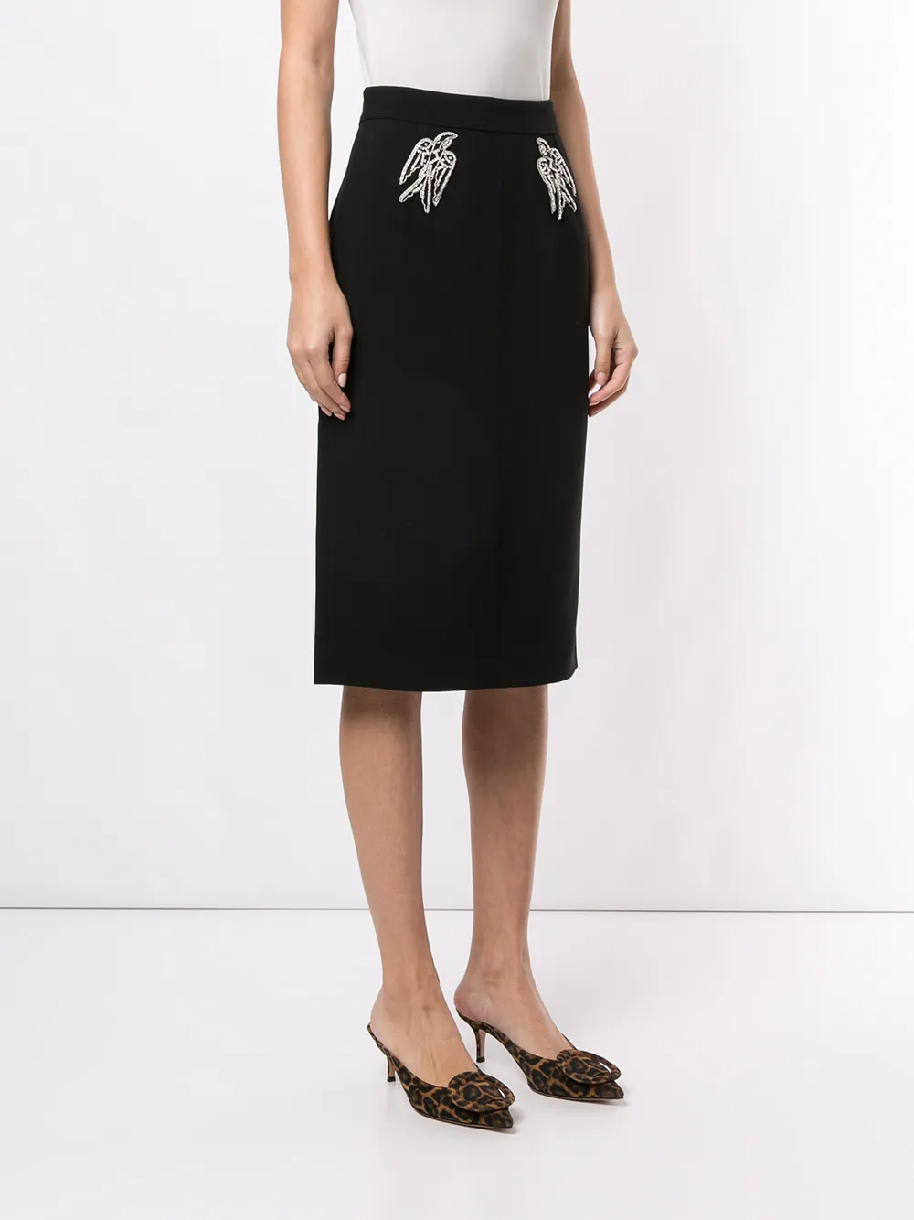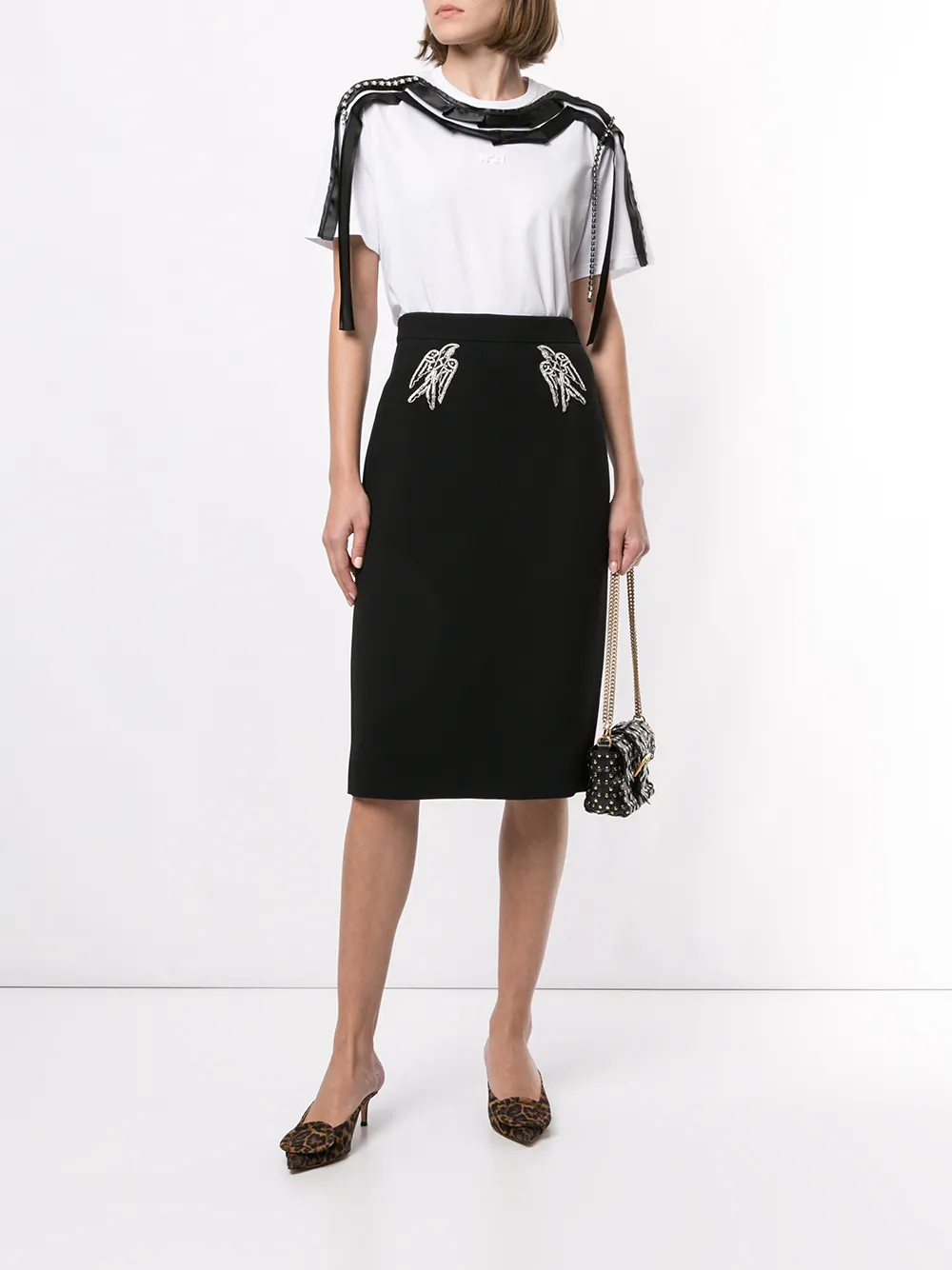 Декорированная юбка-карандаш от Nº21, завышенная талия, застежка на молнии сзади и разрез на кайме сзади, цвет черный